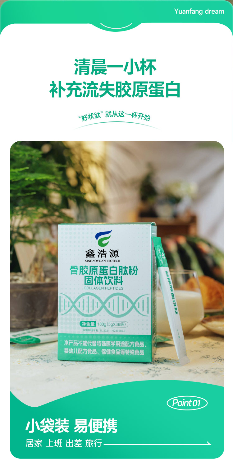 鑫浩源骨胶原蛋白肽粉固体饮料|小分子活性肽高吸收率,还你一个好状态