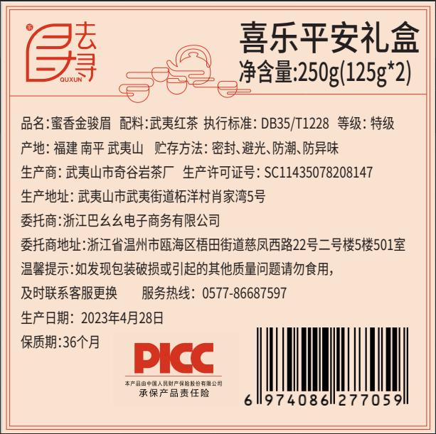 【喜乐平安礼盒】去寻武夷山特级金骏眉高档礼盒送长辈茶叶礼盒红茶