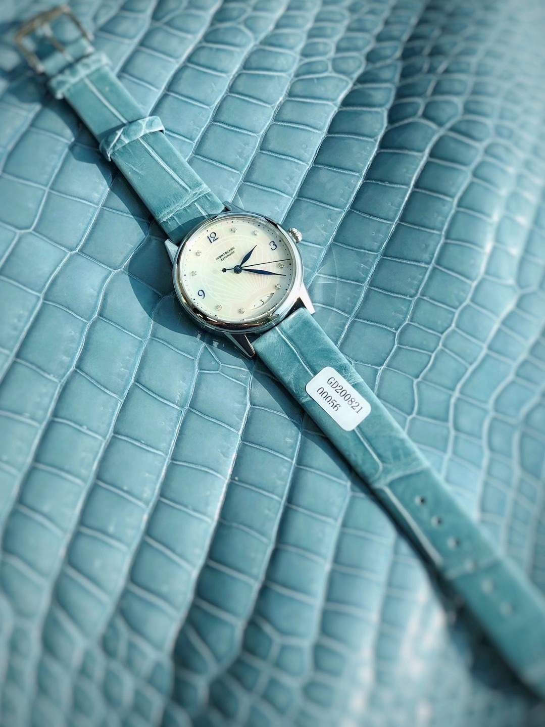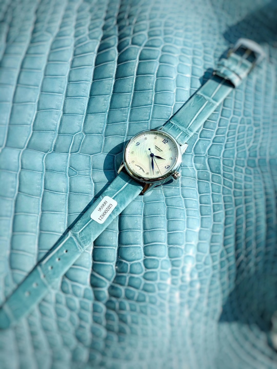独具迷人的天空蓝表带!也是罕见牛仔蓝, ⚠️鳄鱼皮每一条表带的纹路都会不同 属自然现象