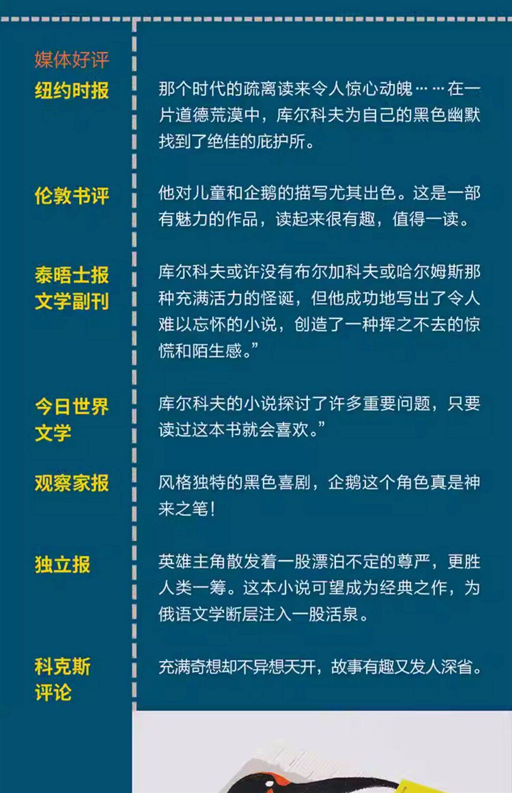 企鹅的忧郁 一个独自生活的男人拯救了一只企鹅的故事 《纽约时报》赞惊心动魄的黑色幽默杰作 长篇小说外国文学图书