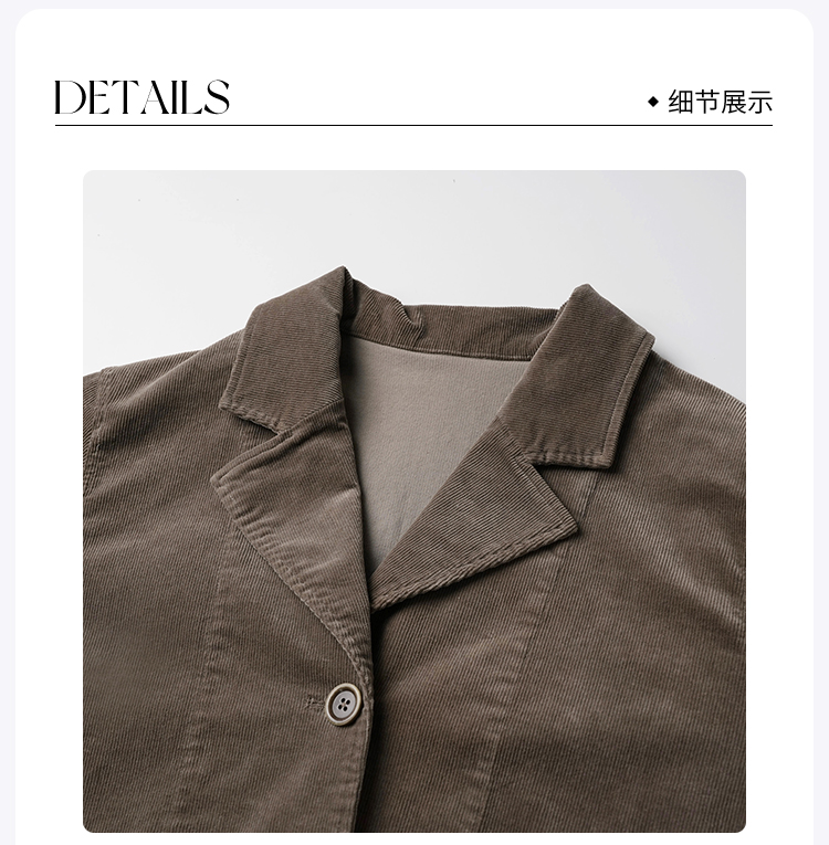 ROMI STUDIO “棕标甄选” 灯芯绒做旧H版廓形休闲西装外套432WS031