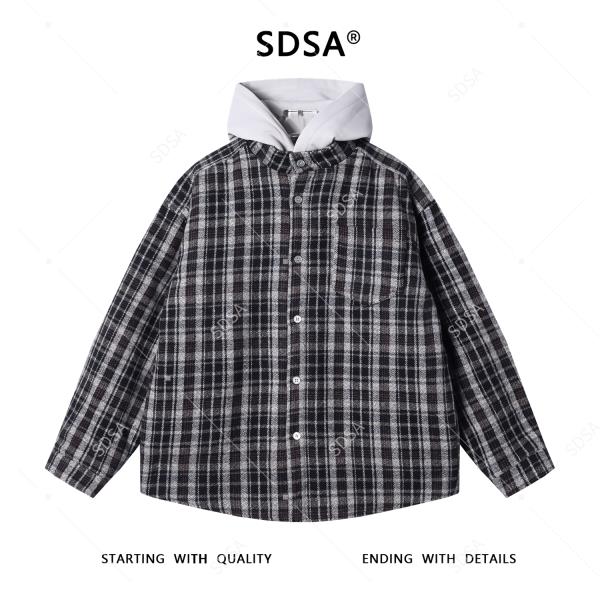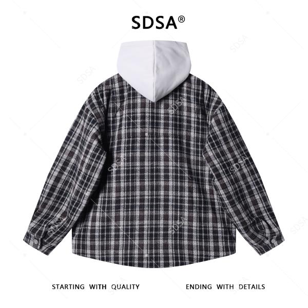 47176SDSA男士秋冬新款痞帅男装韩版拼接格纹纽扣连帽夹克外套百搭时尚