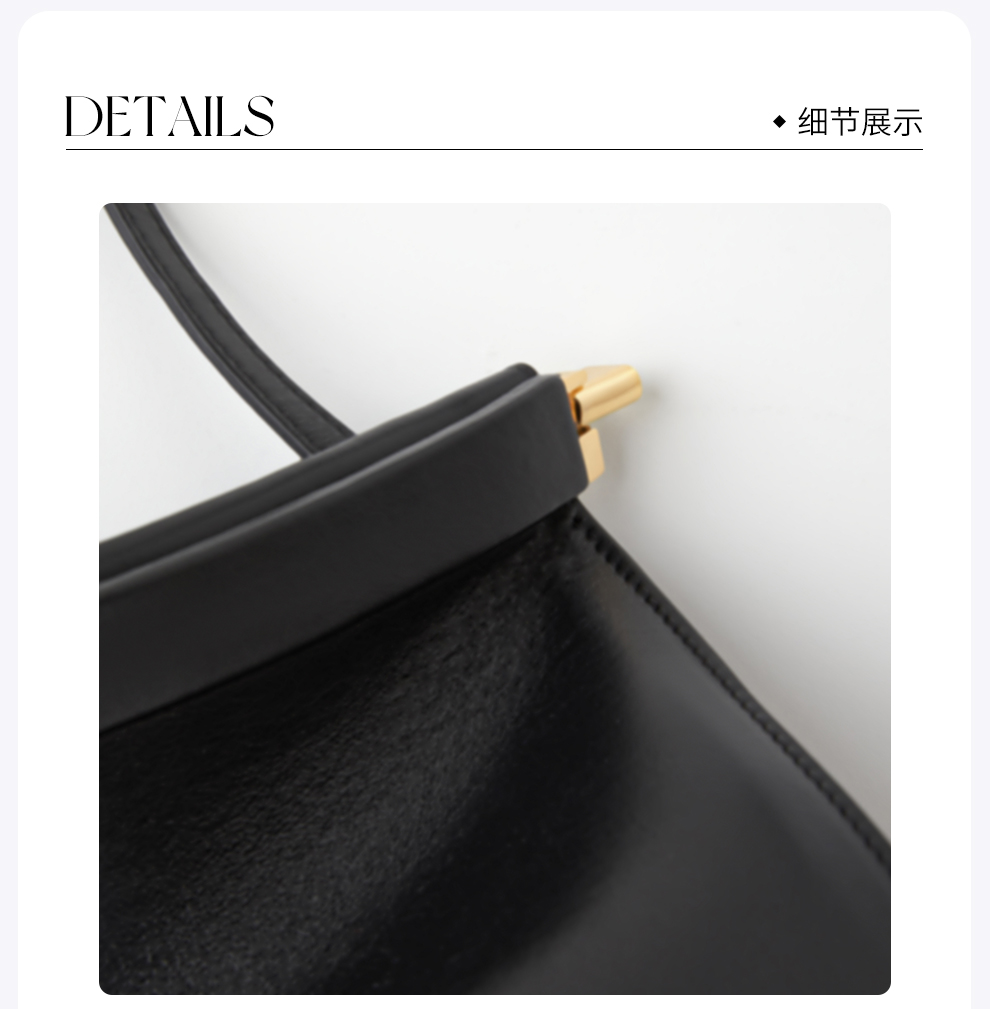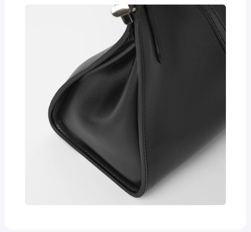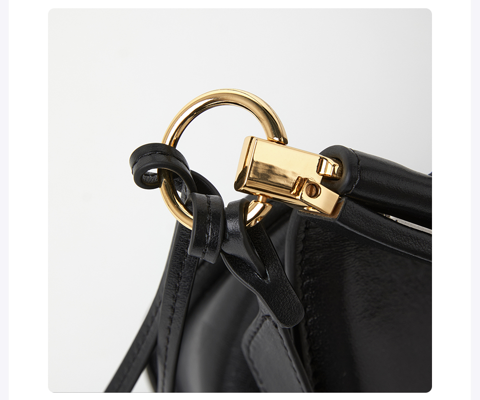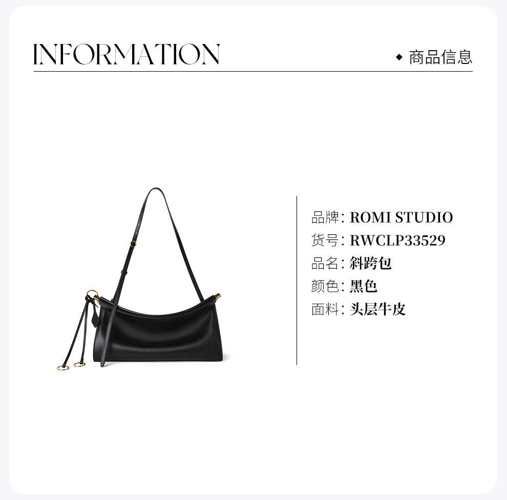 ROMI STUDIO“优雅女士”头层牛皮拼五金黑色手提斜跨包RWCLP33529