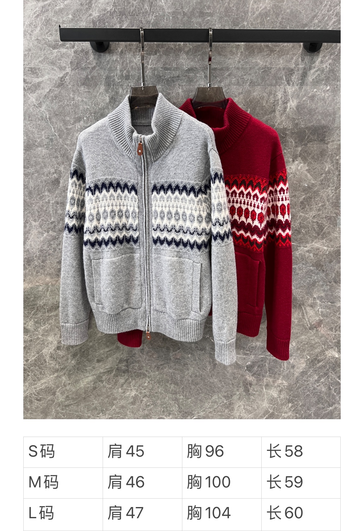 整件成衣采用挂毛工艺、羊绒的质感~温暖来袭🎄双色:经典红色与高级灰色✔男女同款,尽显时尚魅力。高领小设计,锁住温暖,拉链小皮章点缀,细节中透露不羁个性。