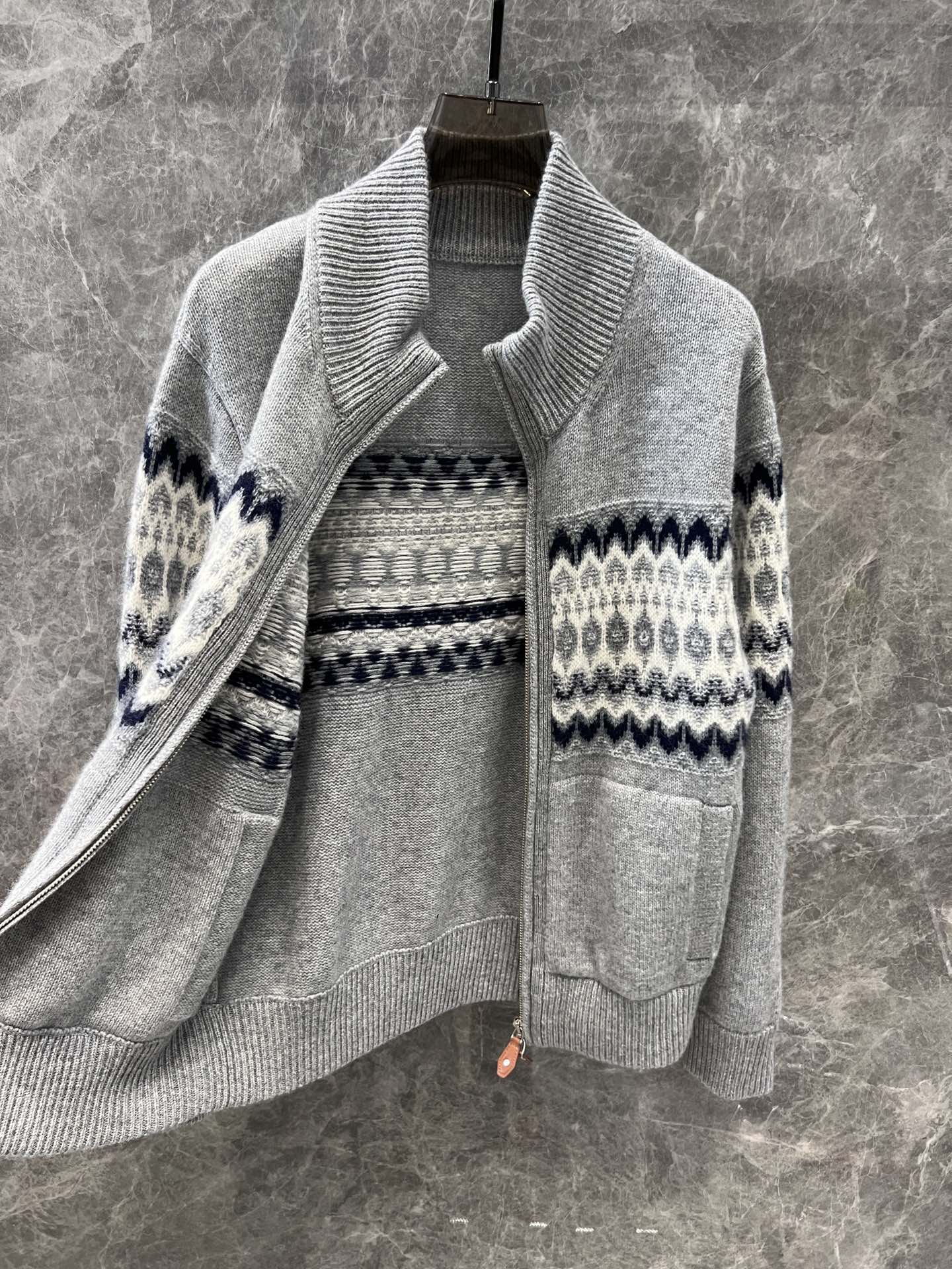 Loro pian*o 24Fw秋冬新款 老钱风费尔岛法式复古双开拉链针织开衫 独家高版出品!