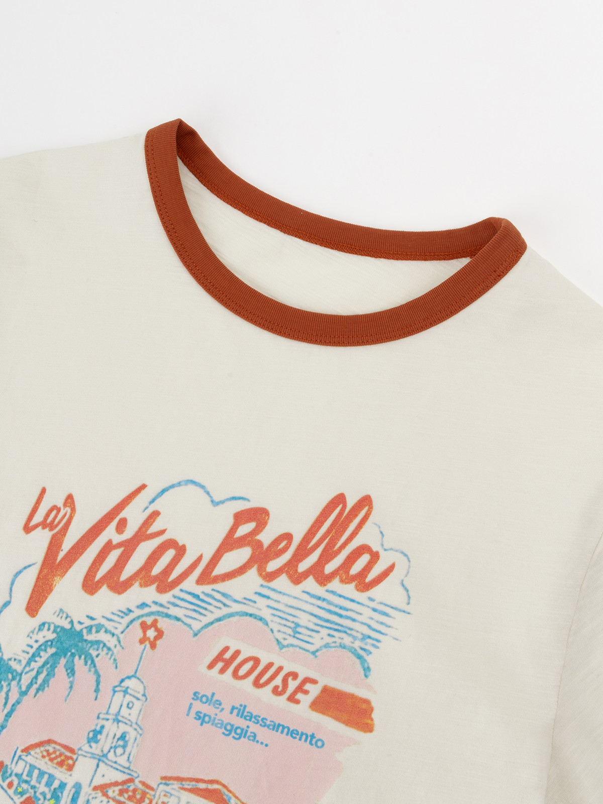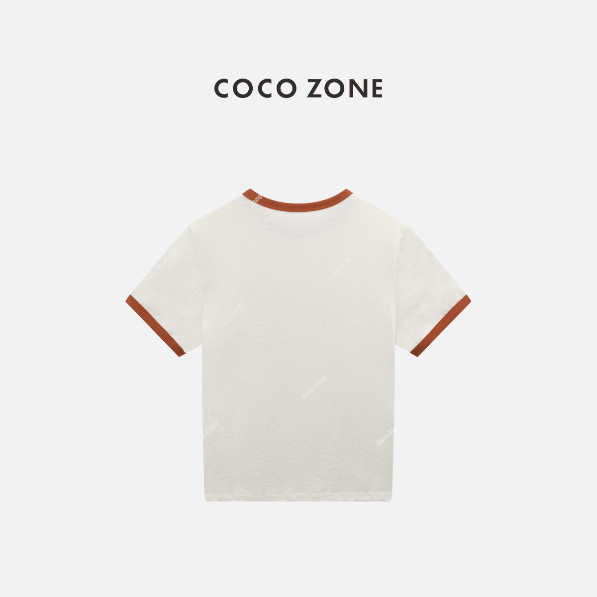 COCO ZONE "加州落日”夏季撞色圆领短袖T恤休闲百搭上衣CC2B1104