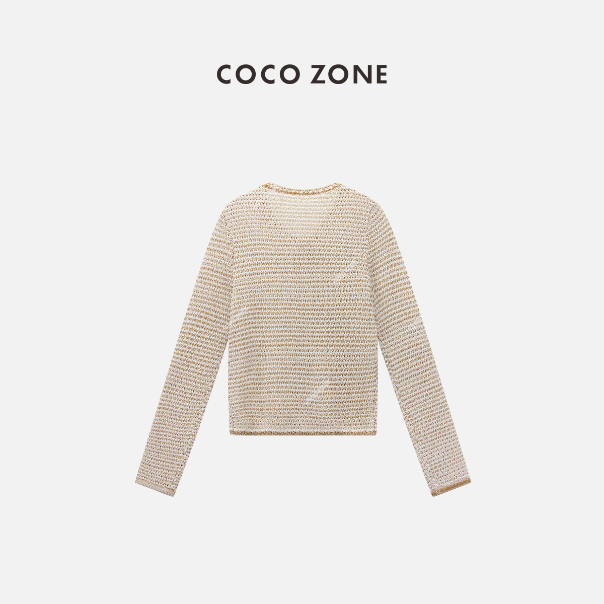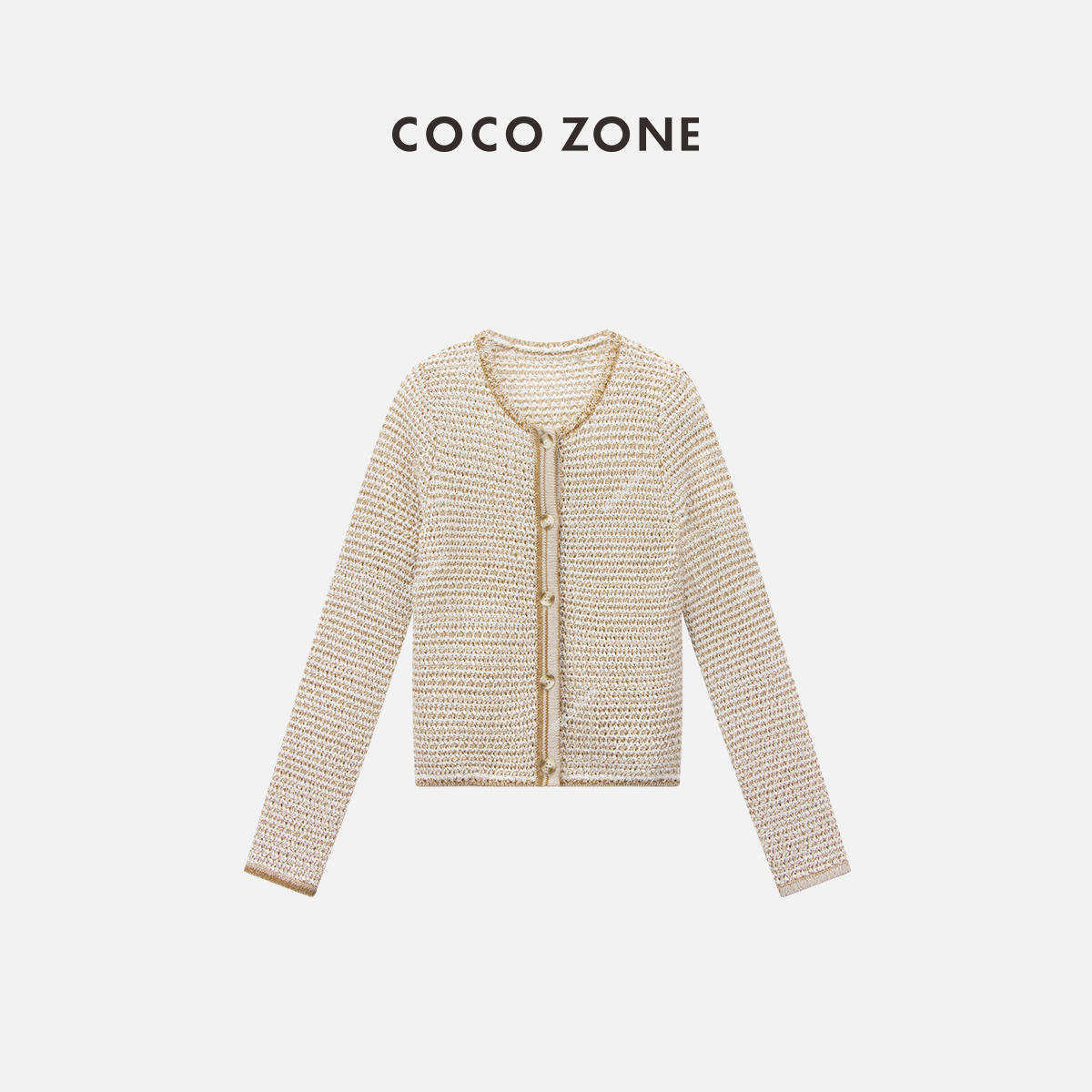 COCO ZONE2024“朱丽叶”夏季圆领长袖针织开衫气质单排扣上衣CC2B0677