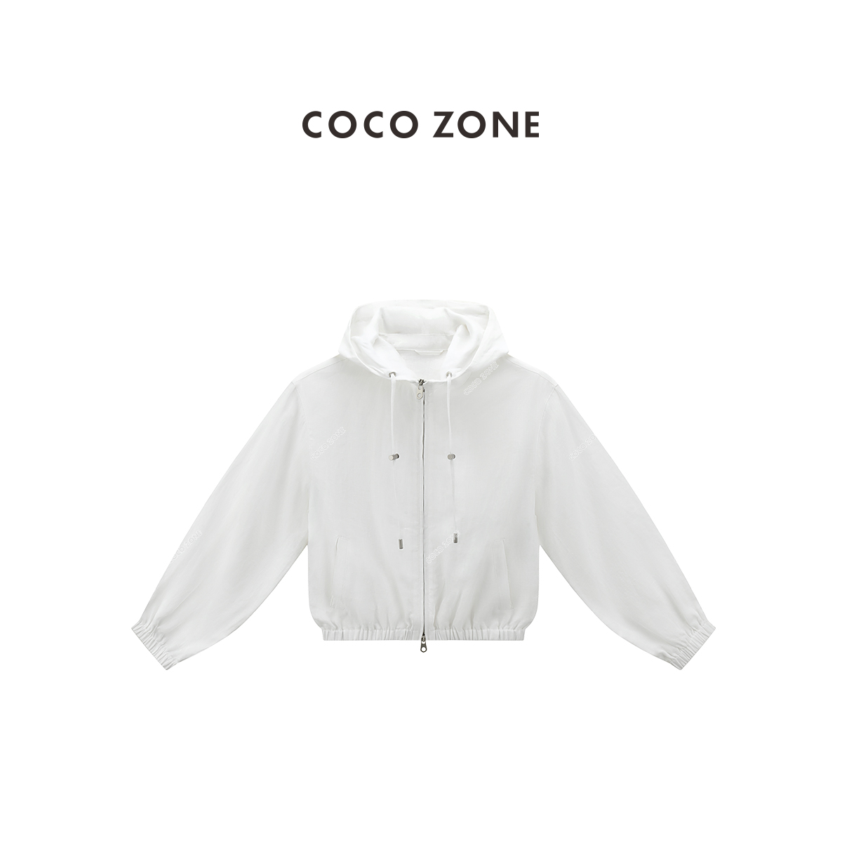 COCO ZONE 刘一一夏季连帽抽绳外套简约休闲长袖上衣 CC2B1185