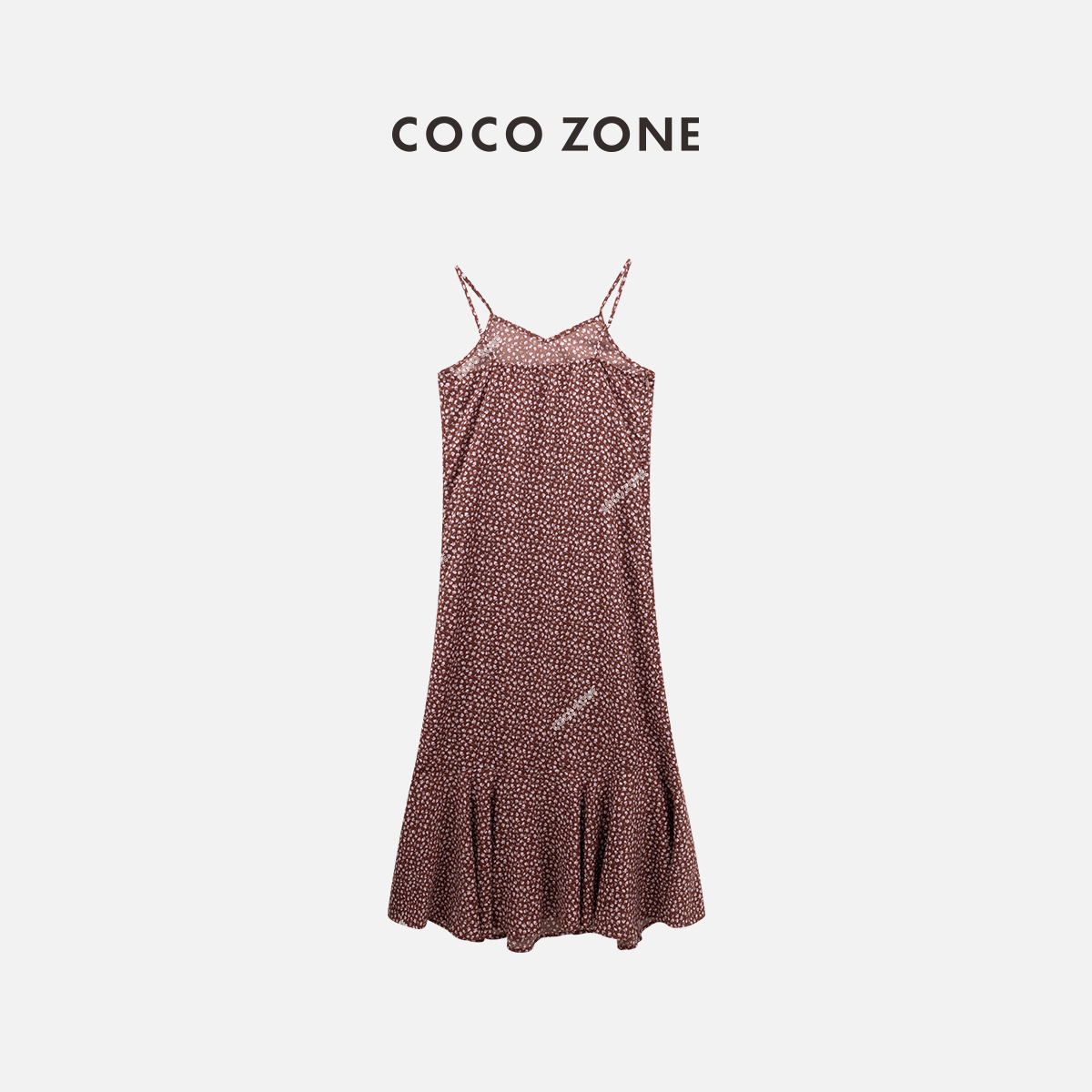 COCO ZONE 时尚复古吊带连衣裙中长款显瘦收腰长裙CC1B1139