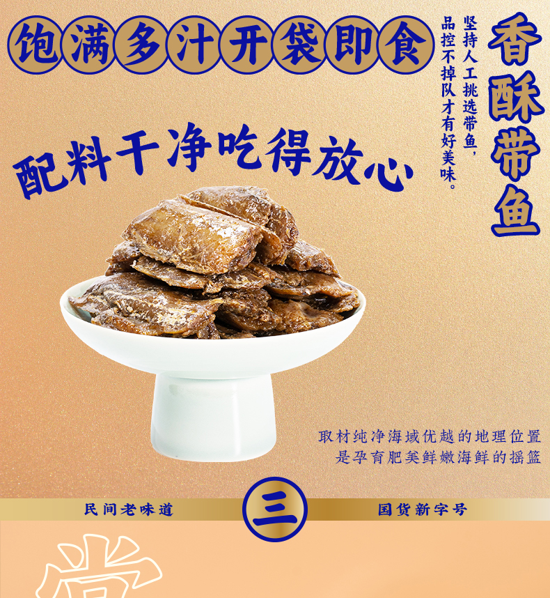 【绮】三关六码头香酥带鱼250g*3