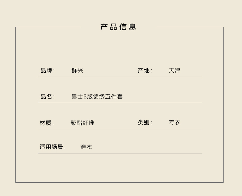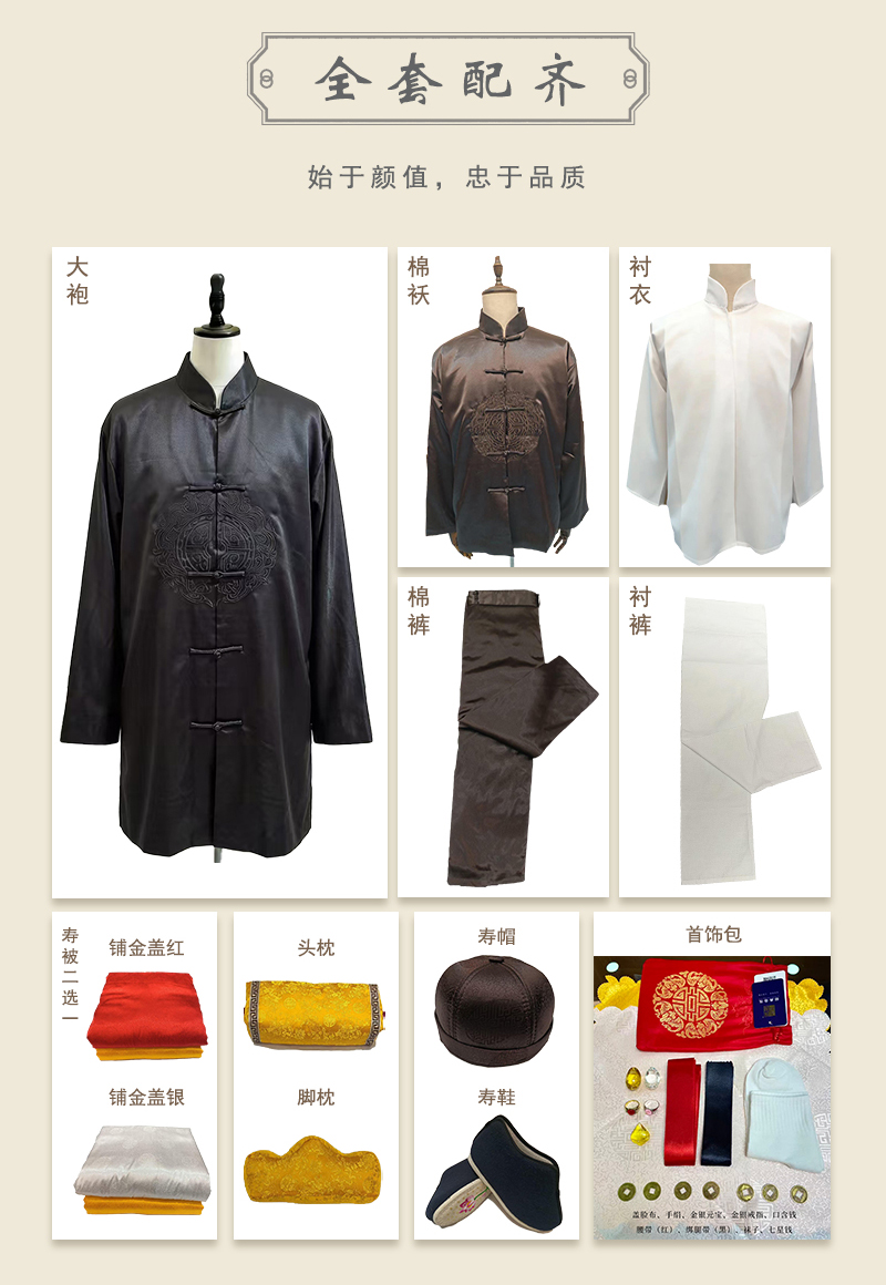 男士传统寿衣寿服B版锦绣五件套寿服套装