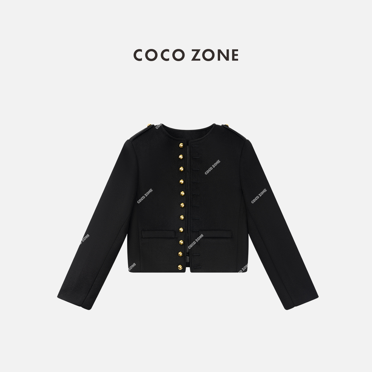COCO ZONE 秋季设计感排扣外套气质圆领百搭上衣CC2C1397