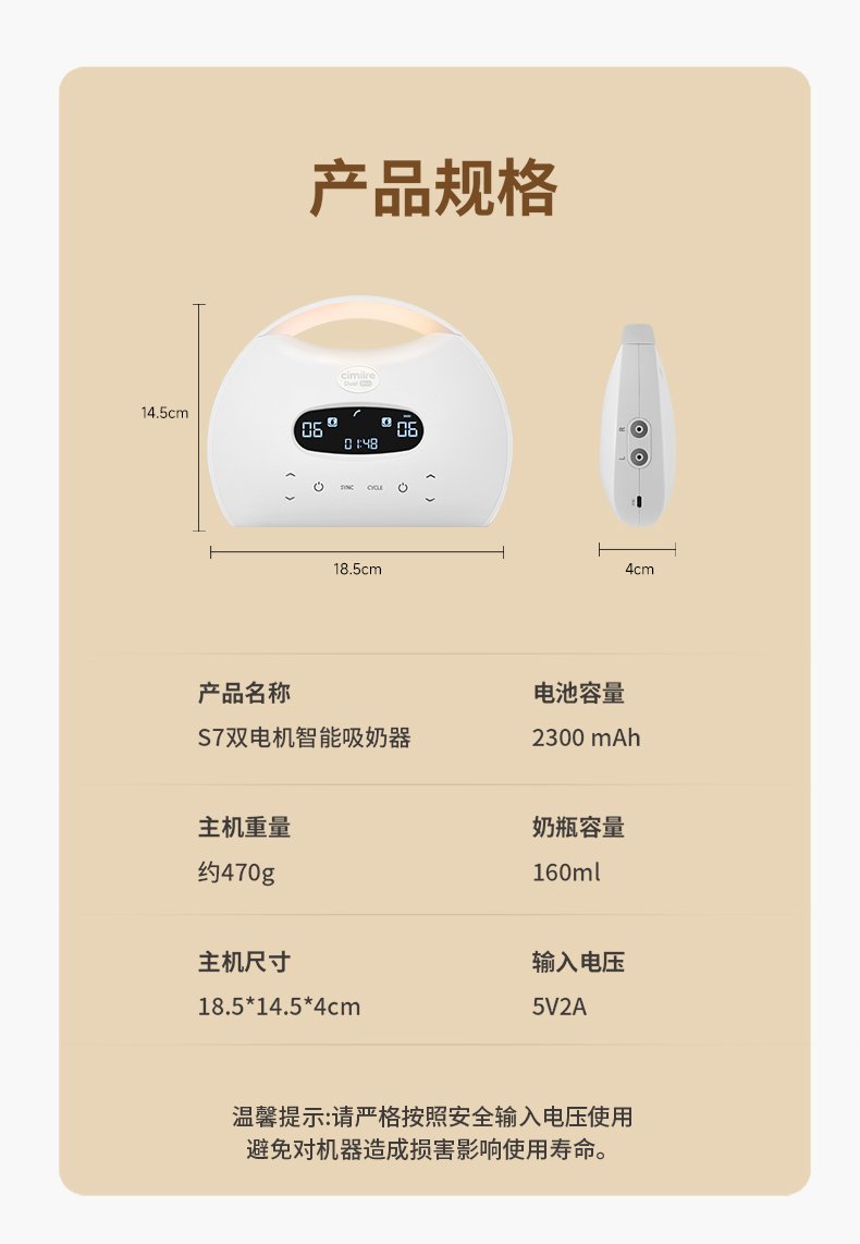 喜咪乐电动吸奶器S7双边挤奶器正品静音智能拔奶器