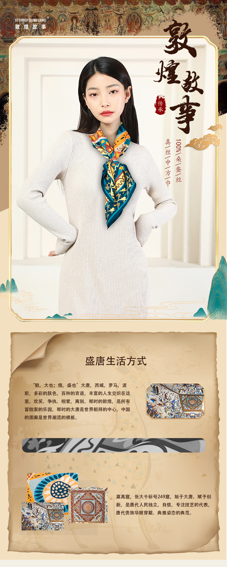 敦煌故事桑蚕丝春秋印花送礼中国风女丝巾