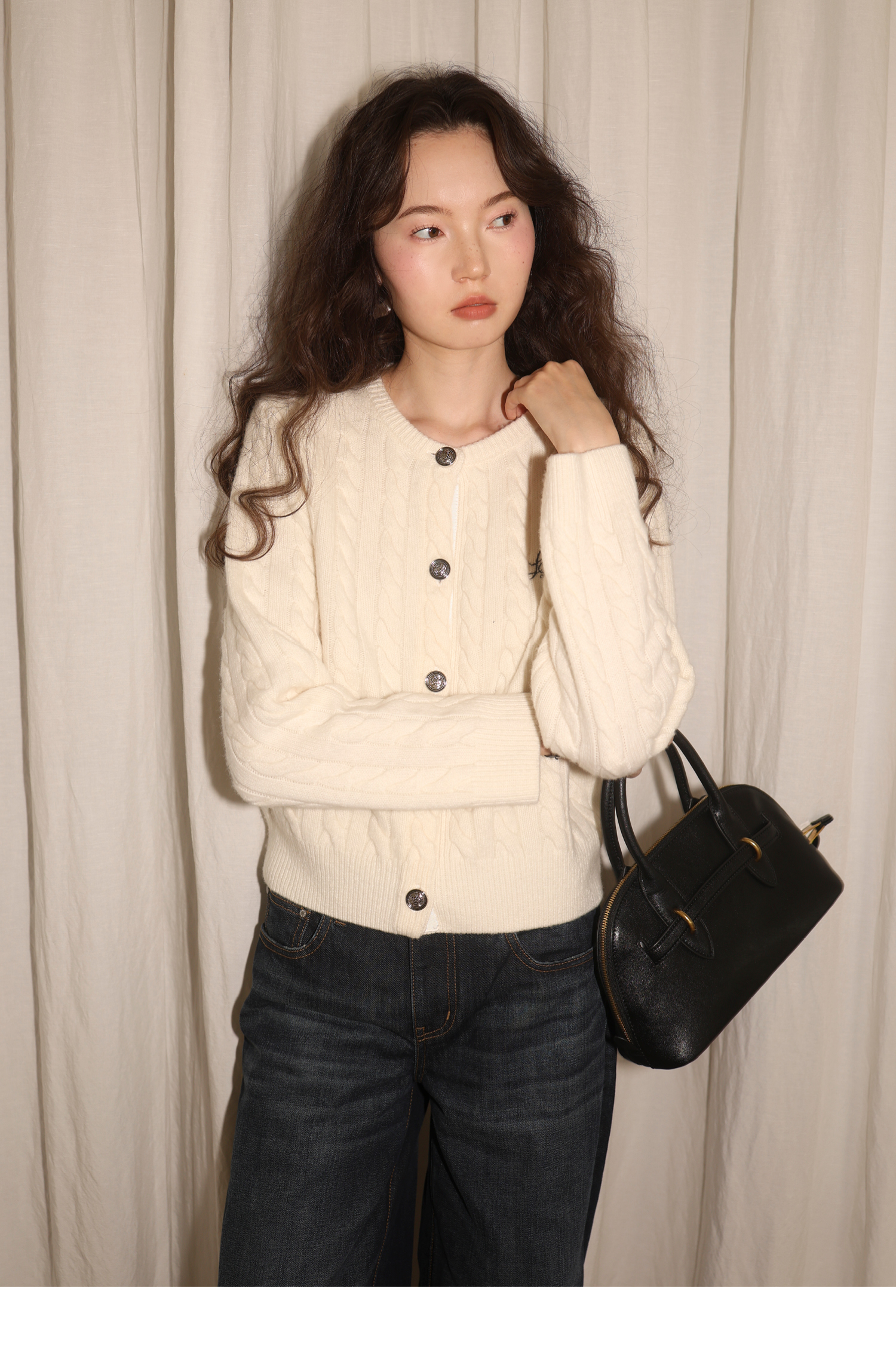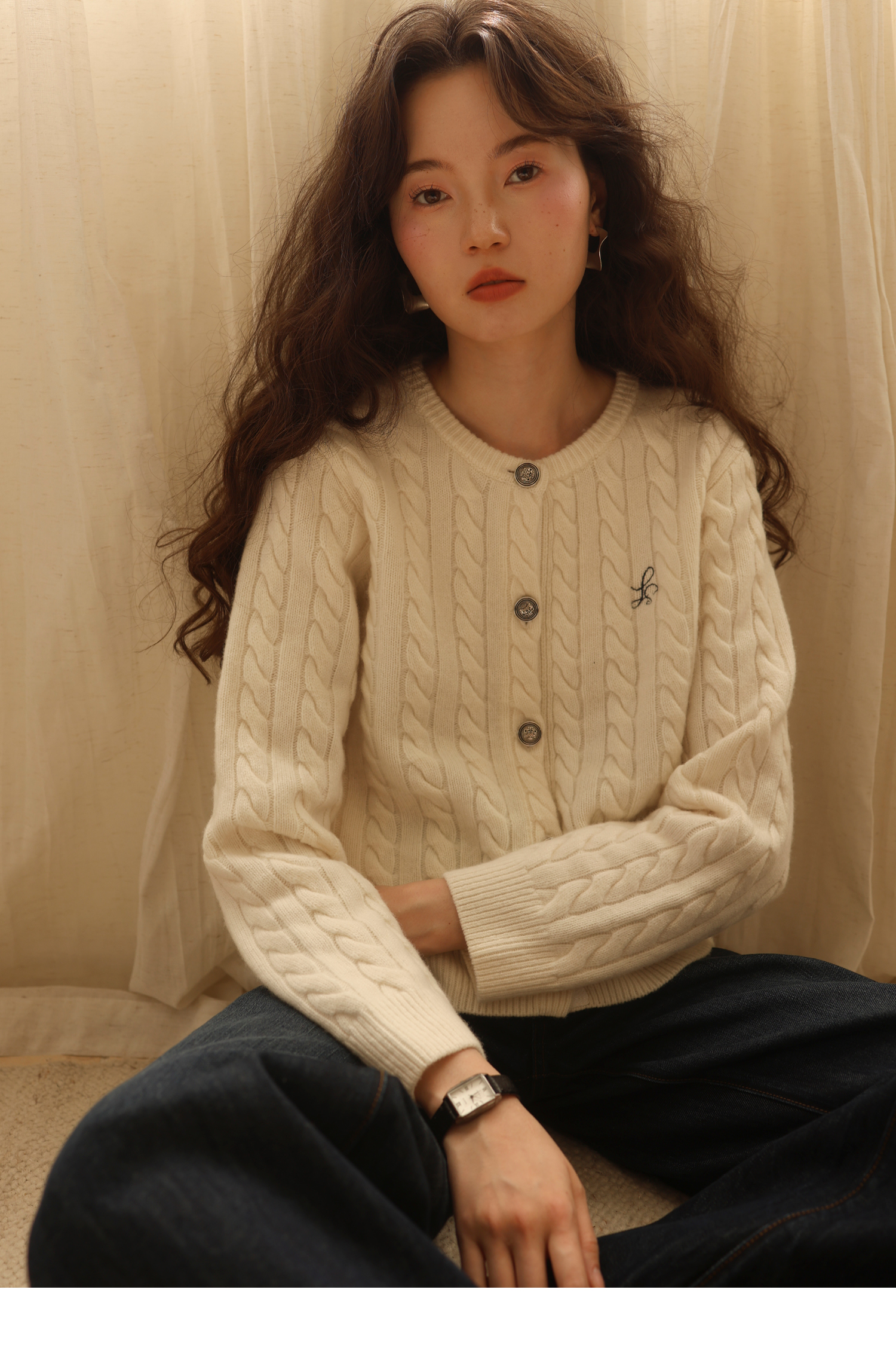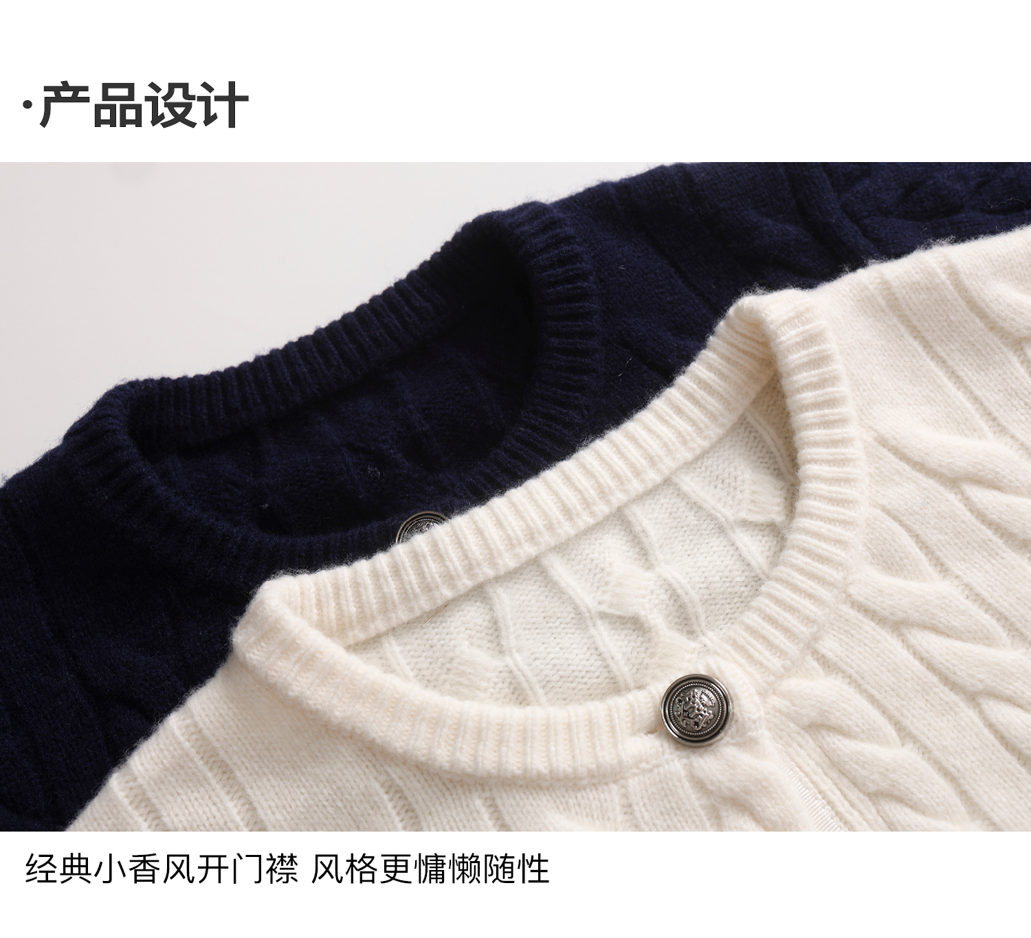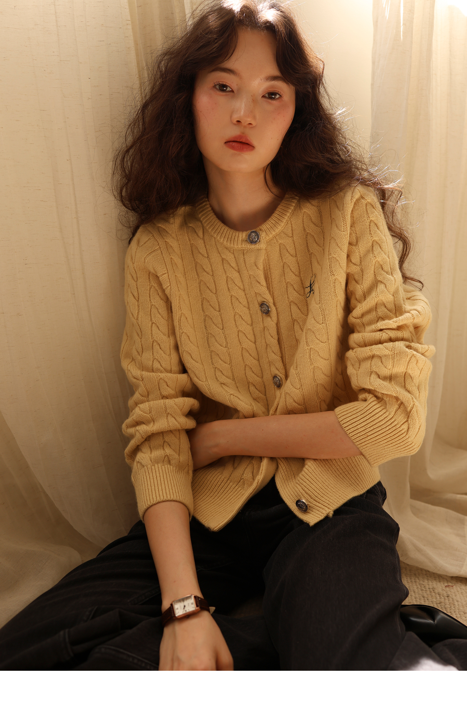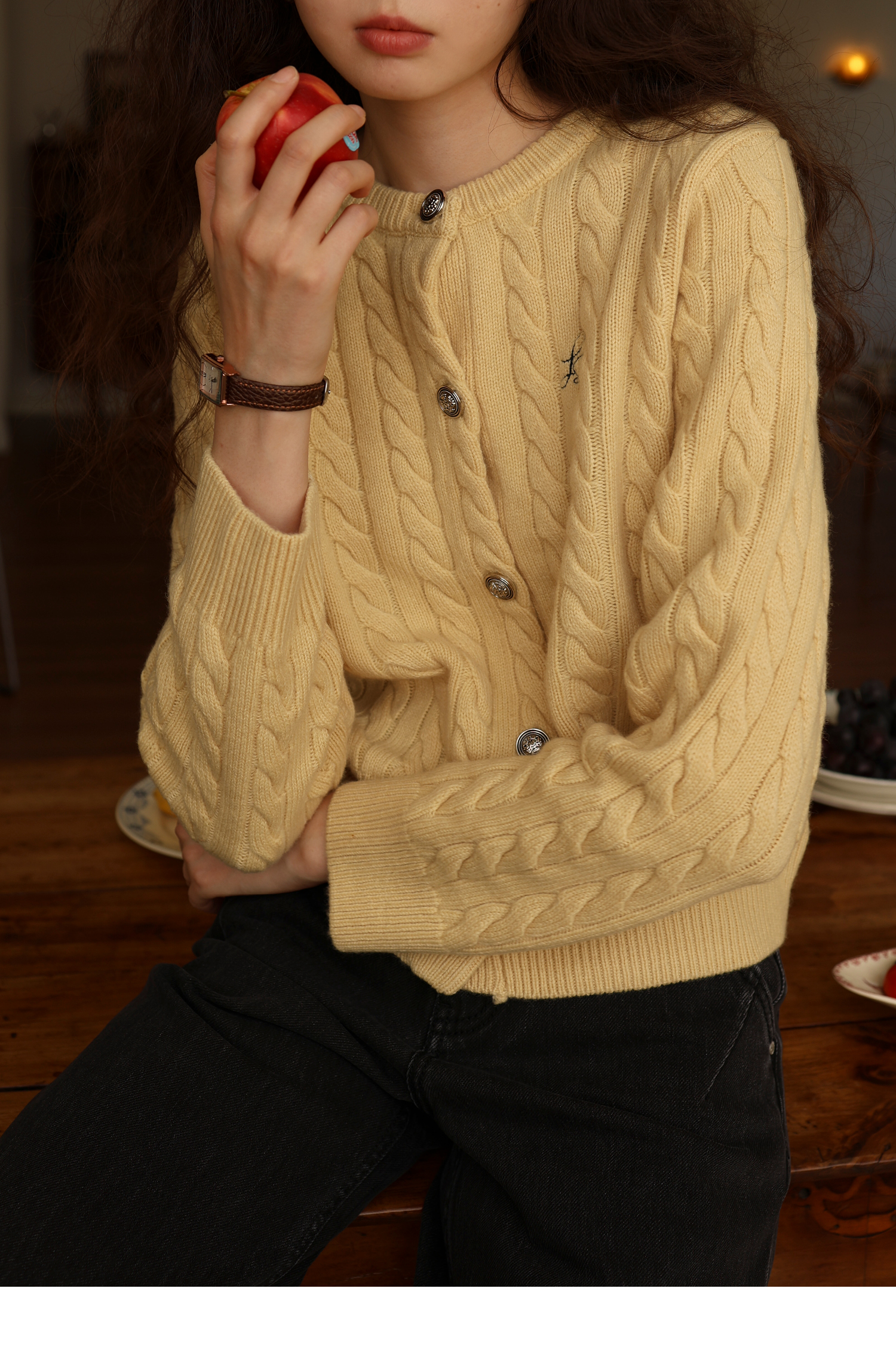 【8/6新品】素舶口碑经典款 澳洲美利奴羊毛 绞花小个子针织开衫