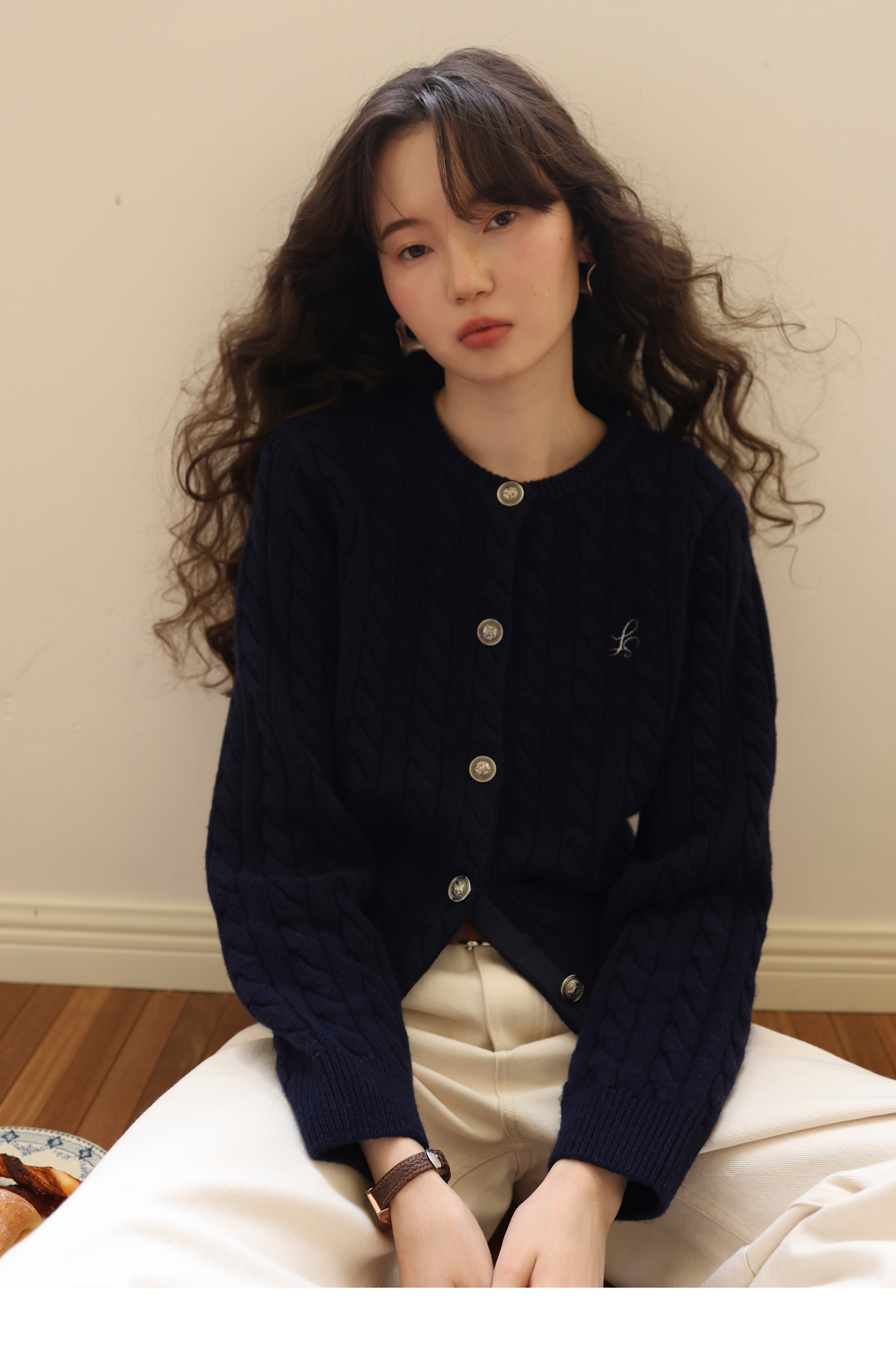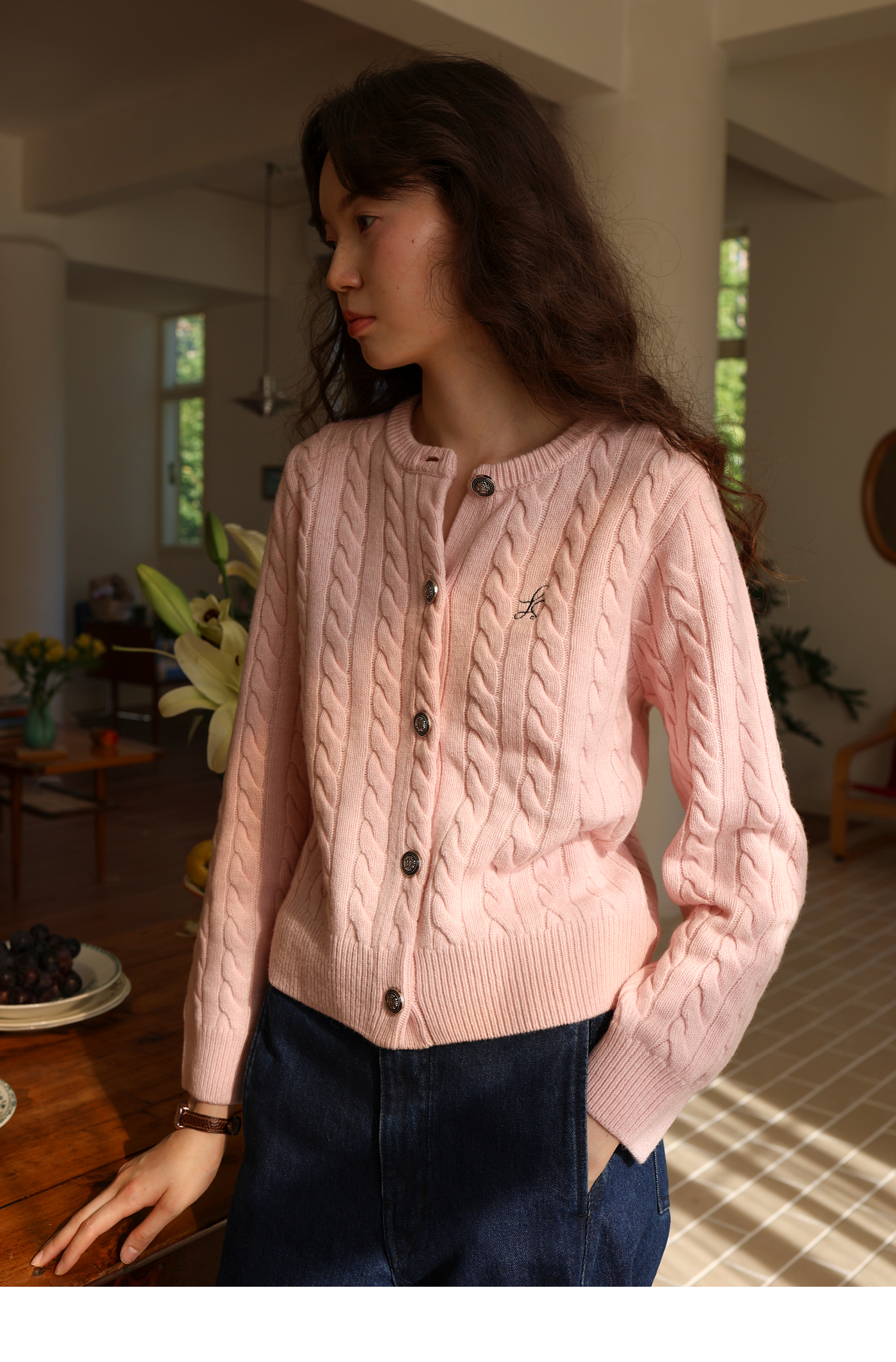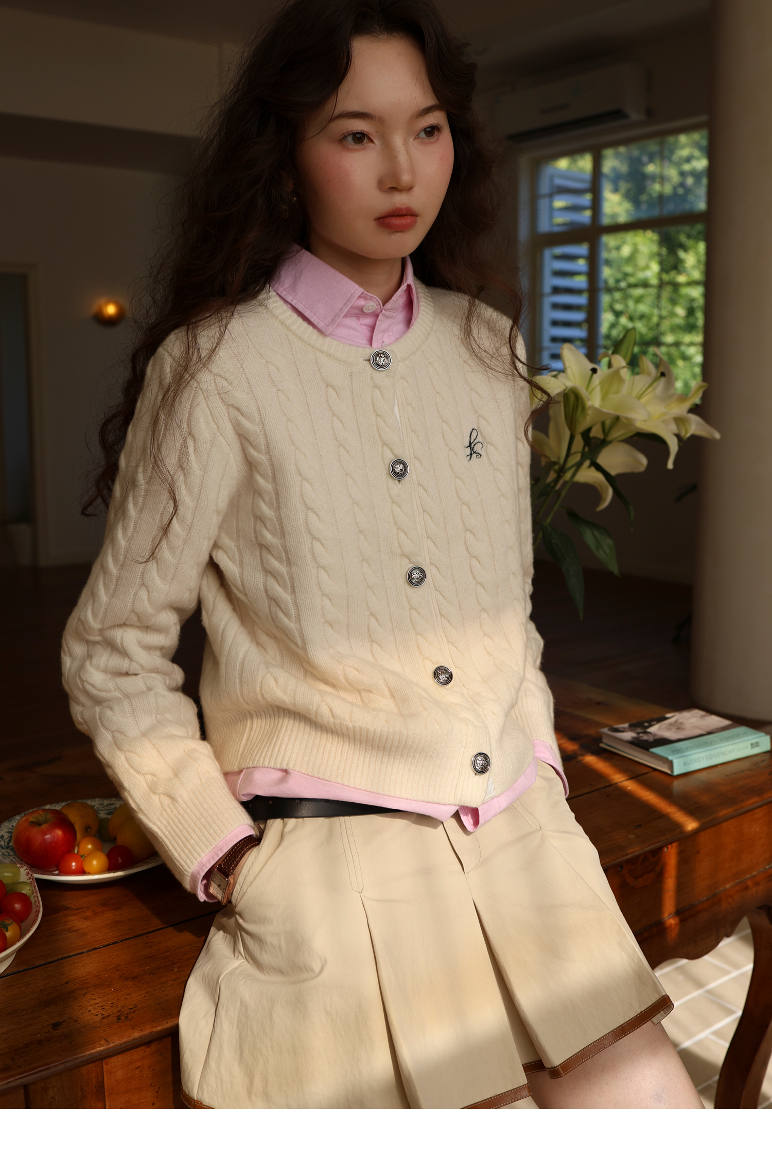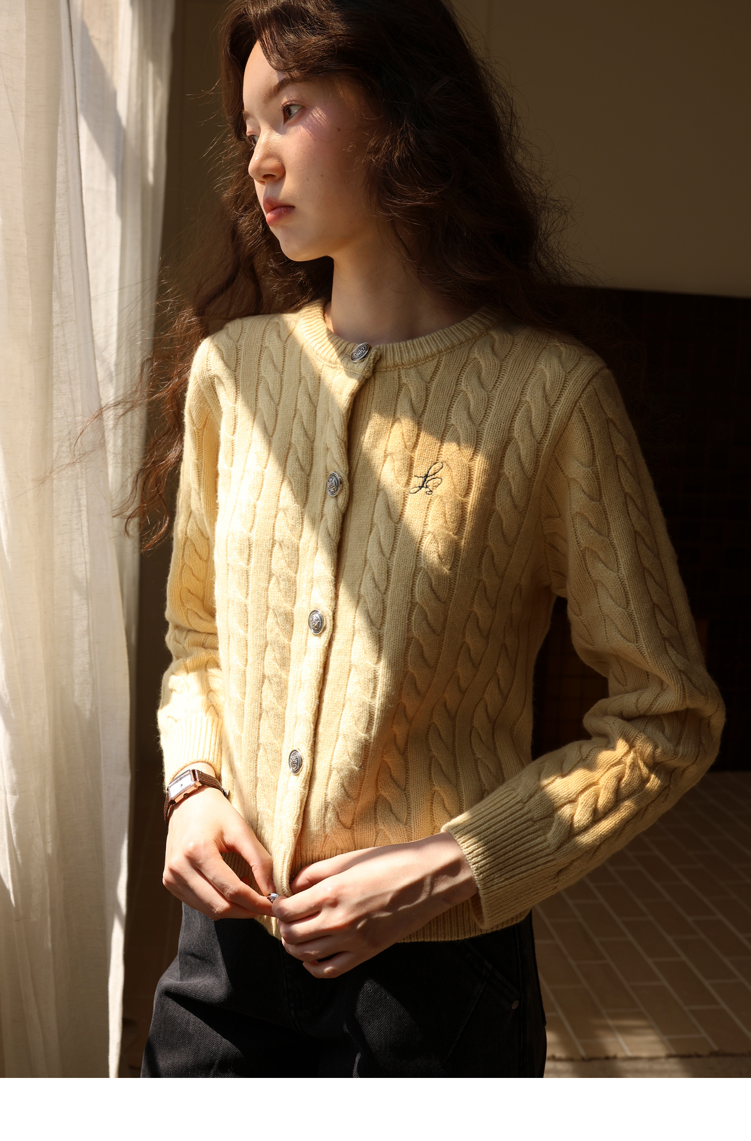 【8/6新品】素舶口碑经典款 澳洲美利奴羊毛 绞花小个子针织开衫