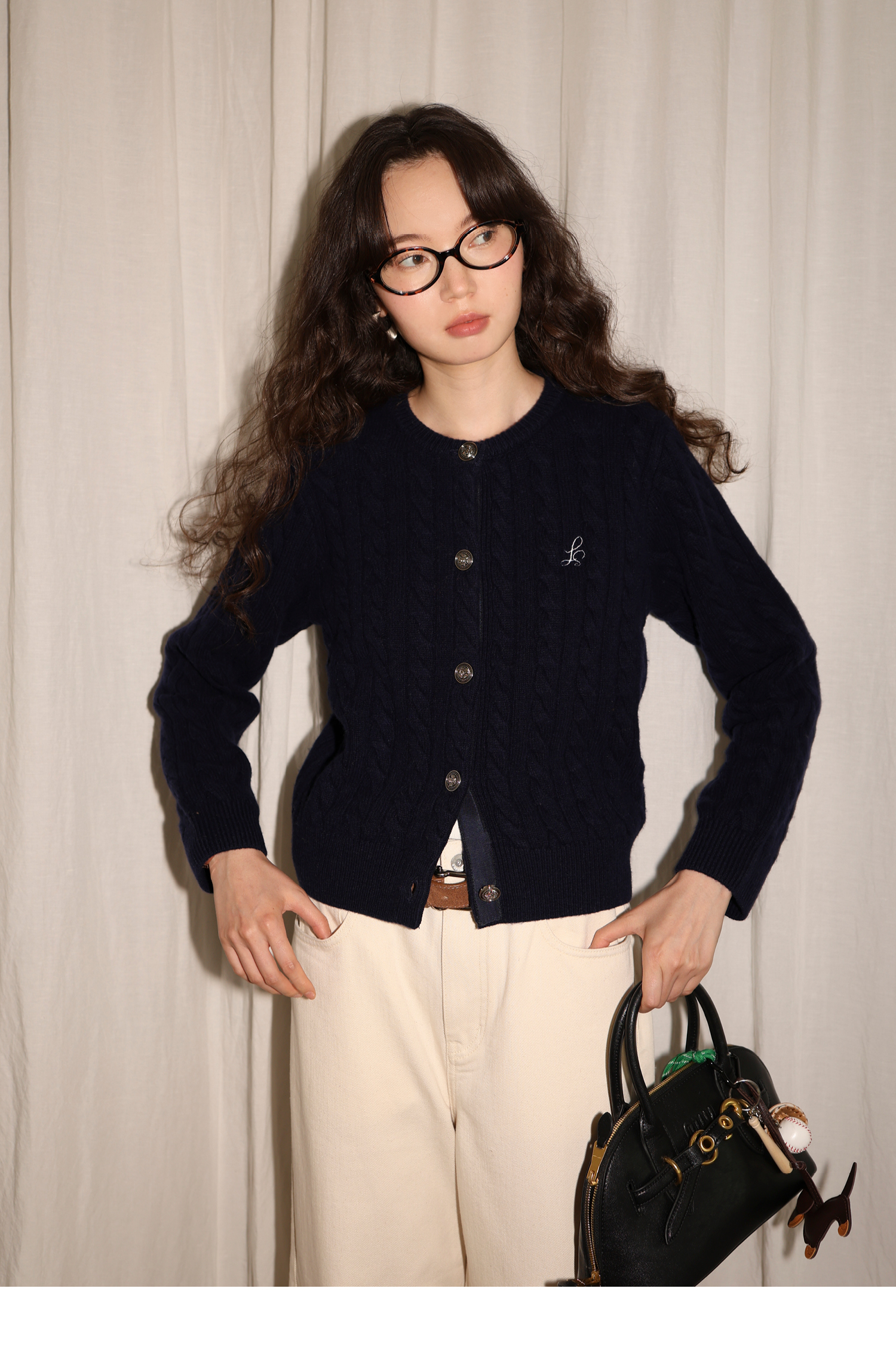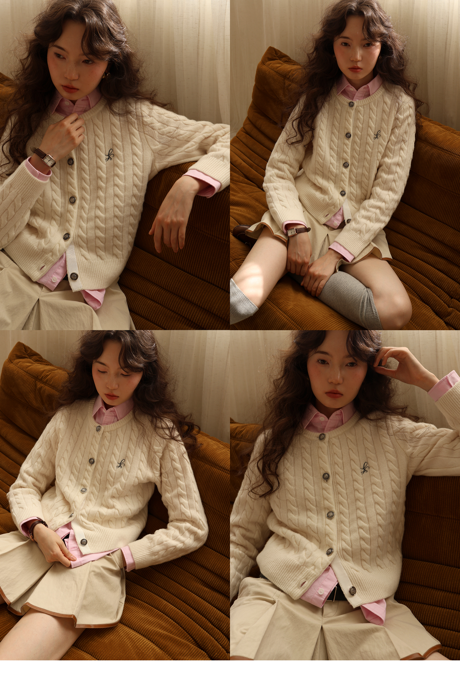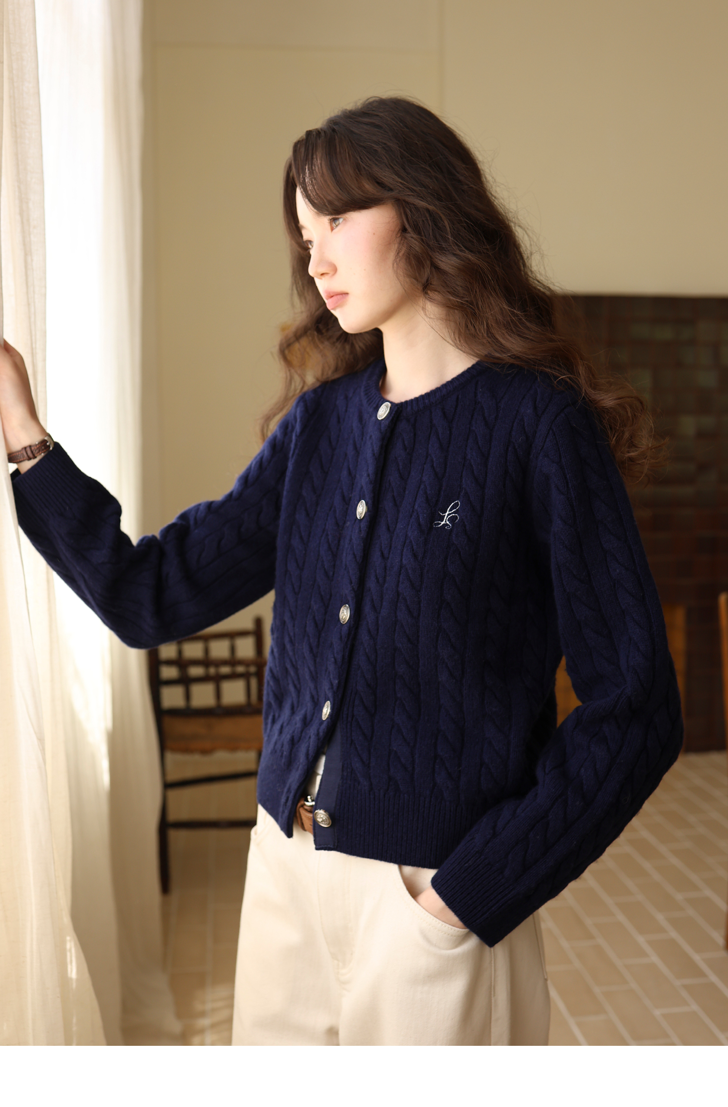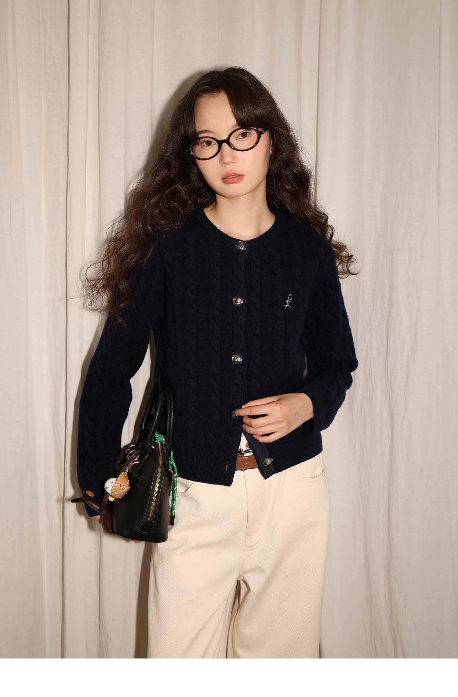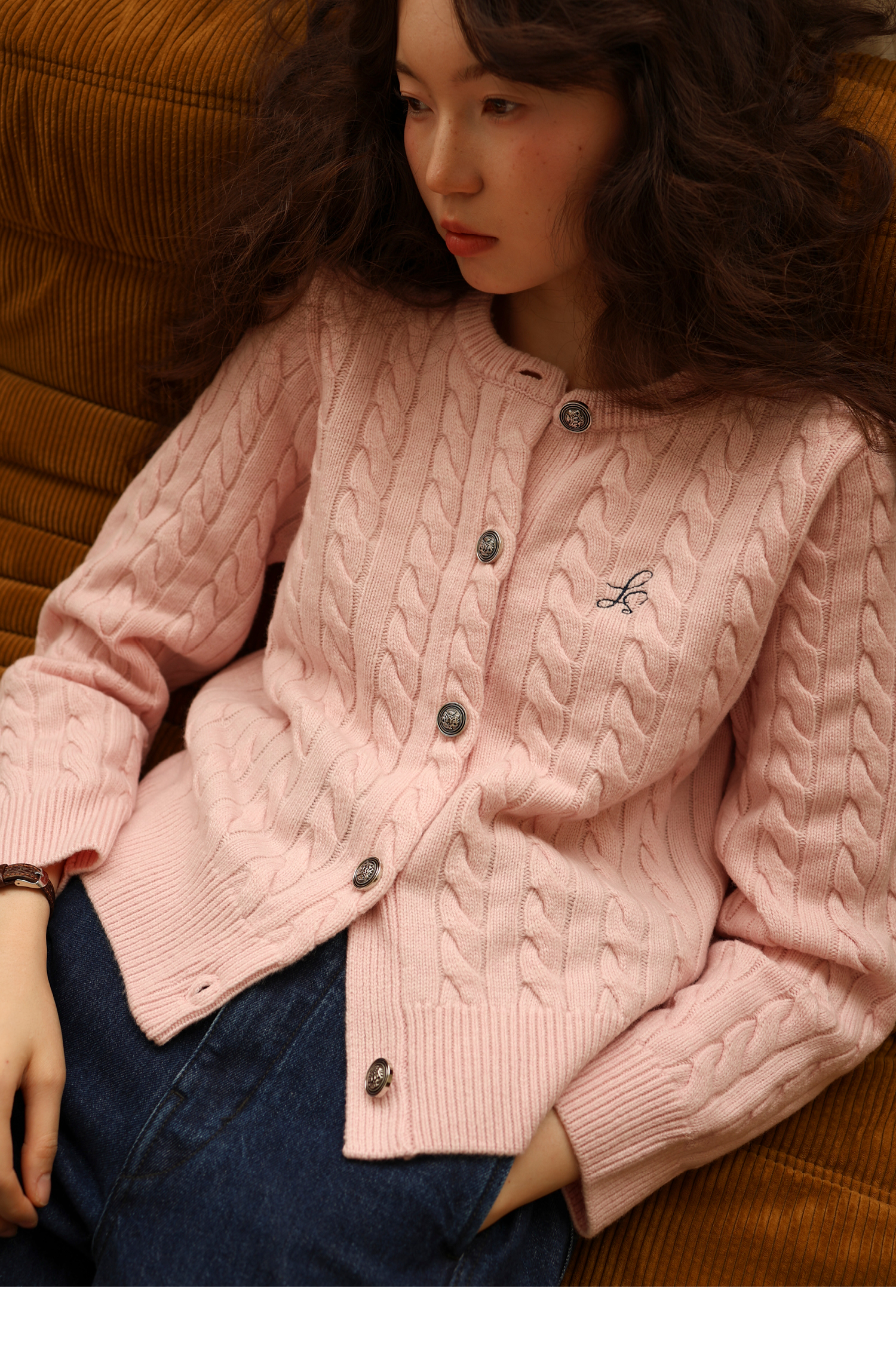【8/6新品】素舶口碑经典款 澳洲美利奴羊毛 绞花小个子针织开衫