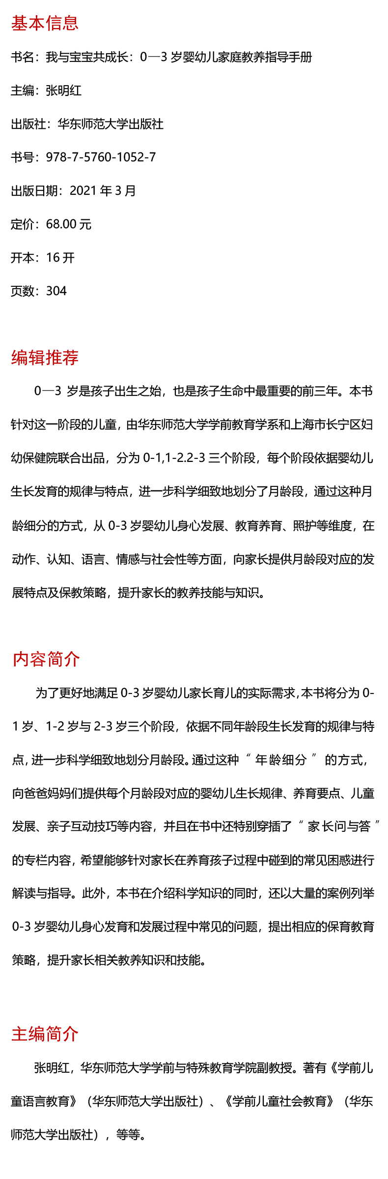 我与宝宝共成长 0-3岁婴幼儿家庭教养指导手册 适合早期教育专业 婴幼儿成长历程