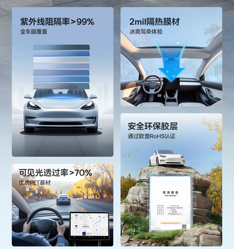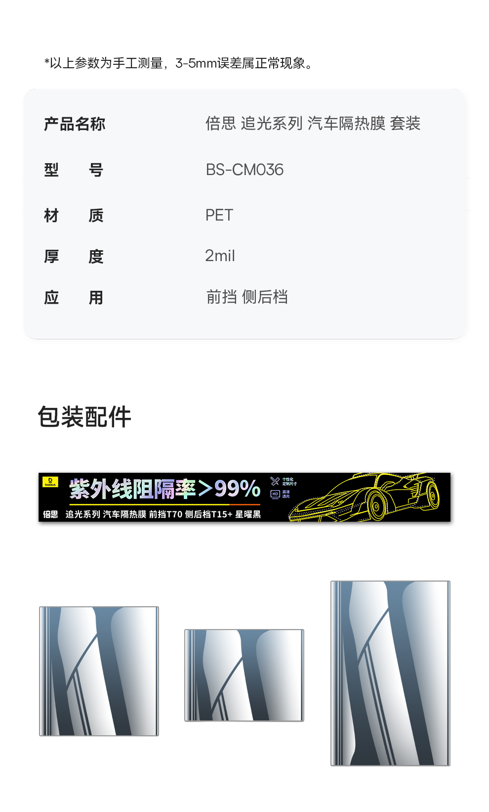 【十一专享】倍思 追光系列 汽车隔热膜 前挡T70 侧后档T15+