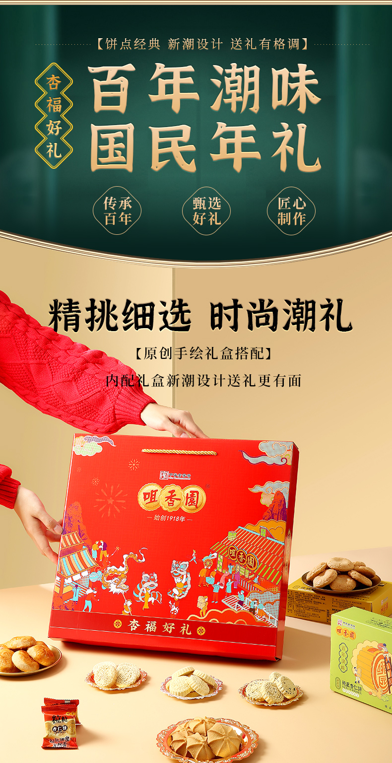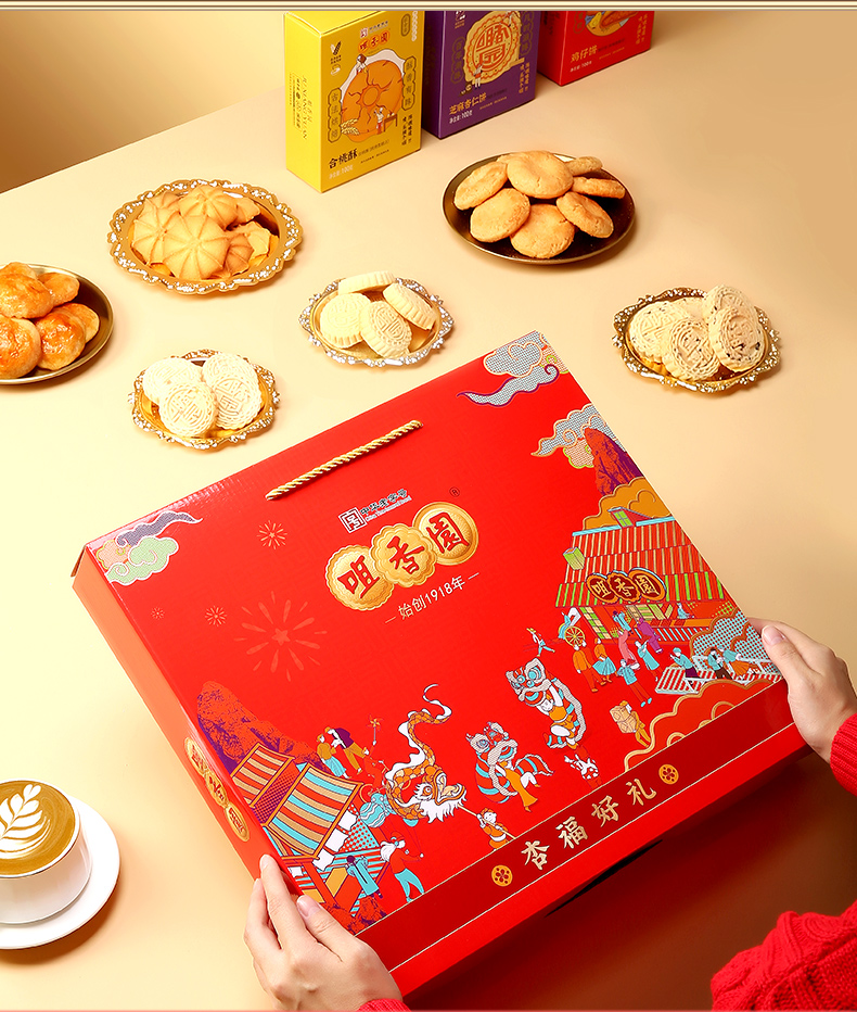 【咀香园杏福好礼礼盒620g】礼盒六盒装 团购送礼手信杏仁饼鸡仔饼曲奇饼