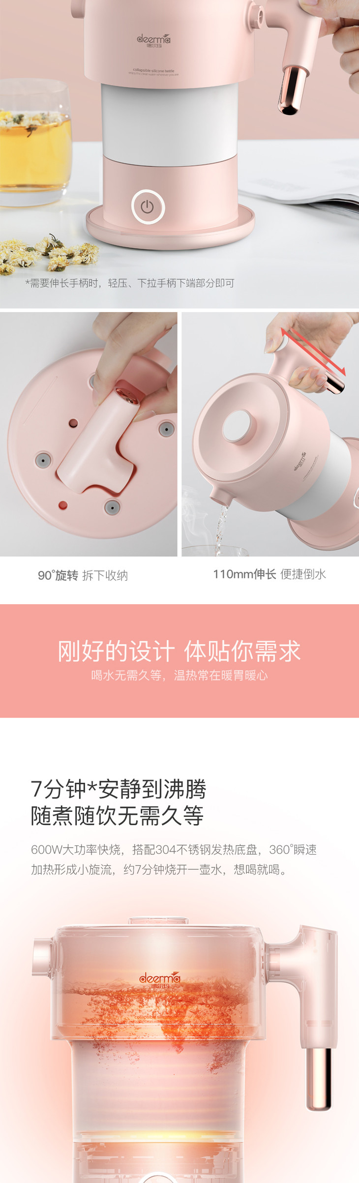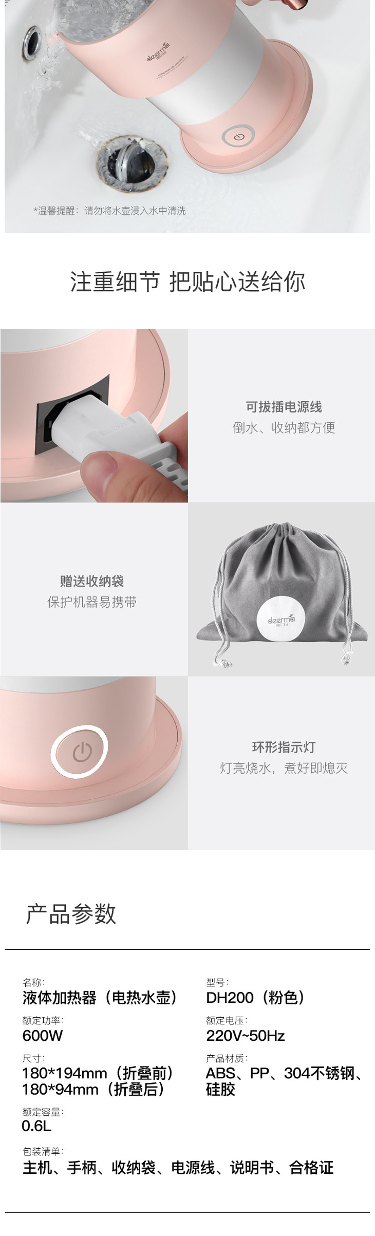 德尔玛DEERMA茱萸粉折叠电热水壶DH200