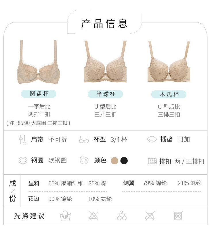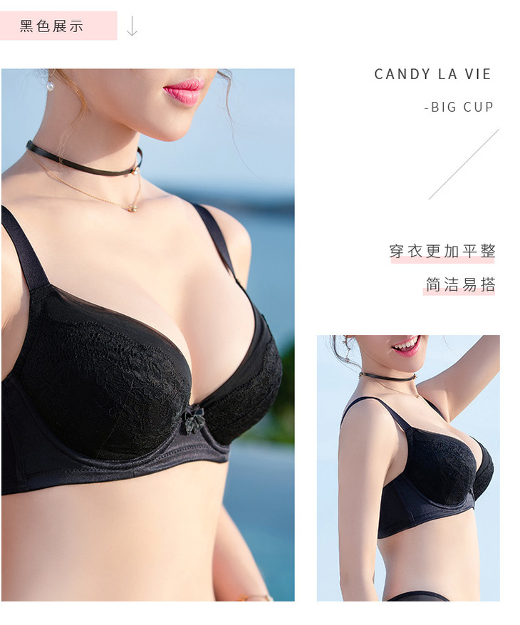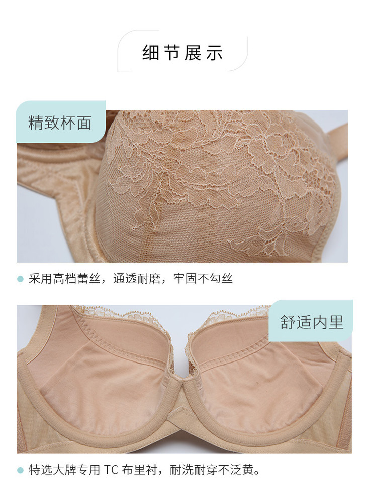 奶糖派邂逅2肤色黑色包容侧收上托蕾丝基础调整大罩杯文胸圆盘半球木瓜