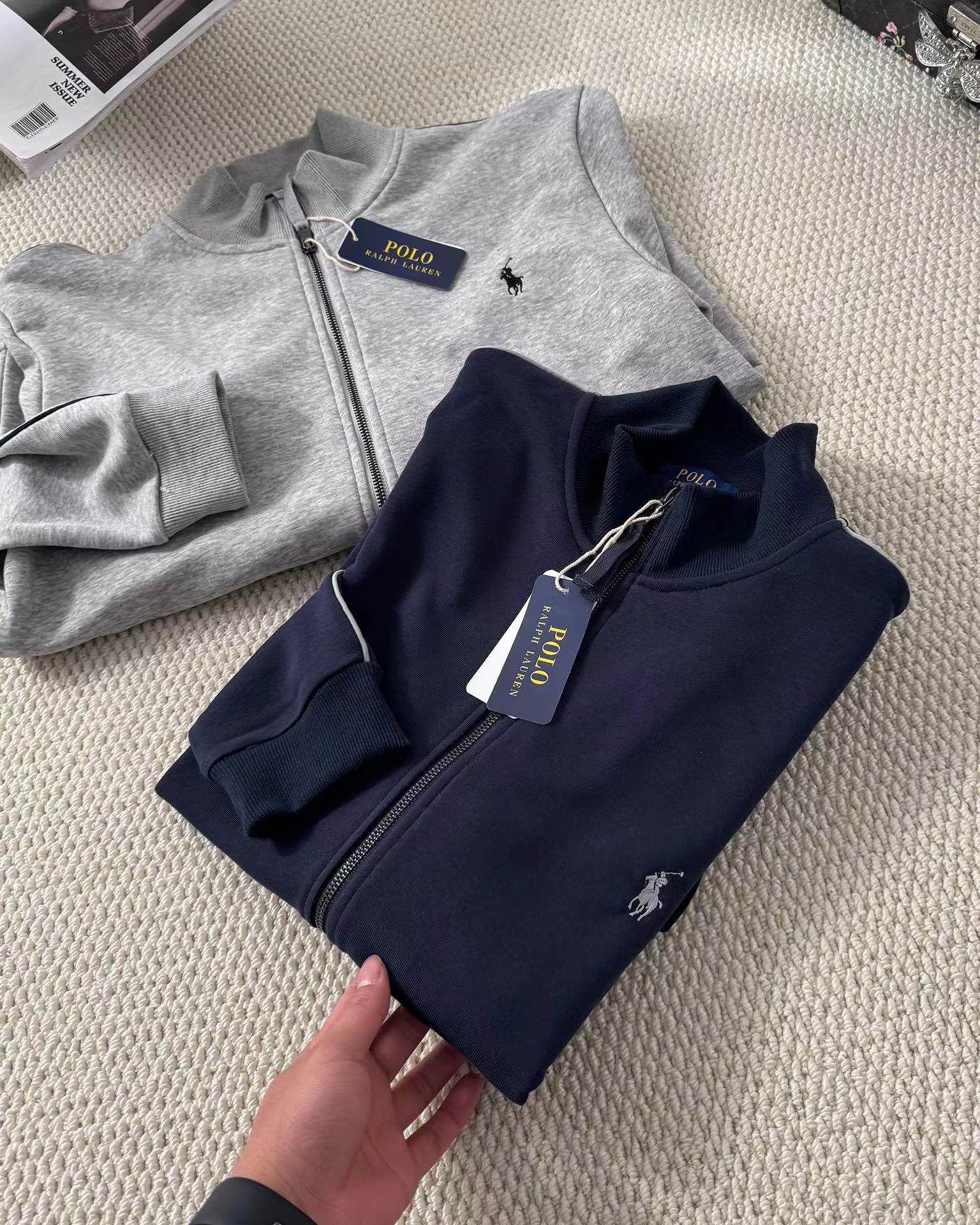 全棉针织大毛圈立领全拉链衫外套 男女同款基础百搭款,款式简约大方,不论休闲还是日常运动都可百搭,面料柔软舒适,全棉毛圈针织面料 质感更没得说,弹性蛮不错 不易起球不易变形,更不会缩水 放心大胆下,触感温柔细腻 拿在手里很柔软,剪裁简约,轮廓线条流畅且一气呵成,配合小马标设计,在休闲之余彰显服装品牌感,袖口下摆罗文微收设计,干净利落有型,这种卫衣开衫设计不勒脖子,更显时髦,还能凹造型,两侧斜兜,方便实用,专属标志小马标识刺绣,德国进口织机上机,立体剌绣logo饱满度高~羔级感十足,辦识度极高,配色焕然一新,唤醒秋冬日里的自由和生机,日常休闲百搭,简单羔级的同时又很舒适轻服,男女都可穿哦~