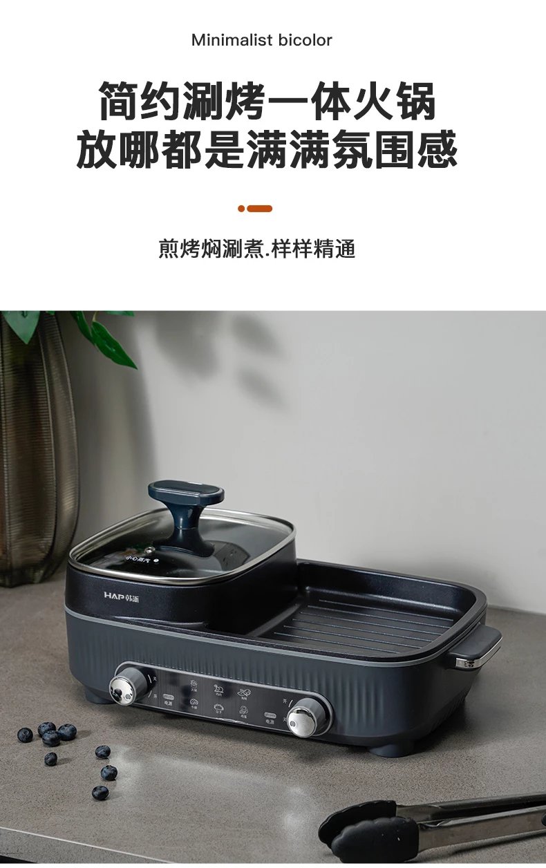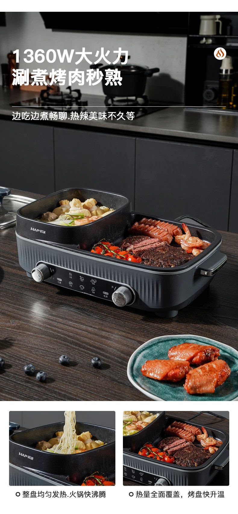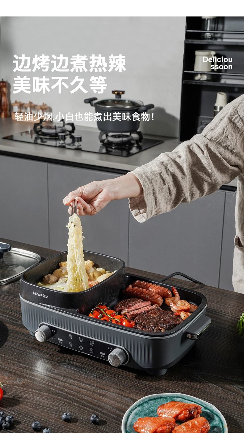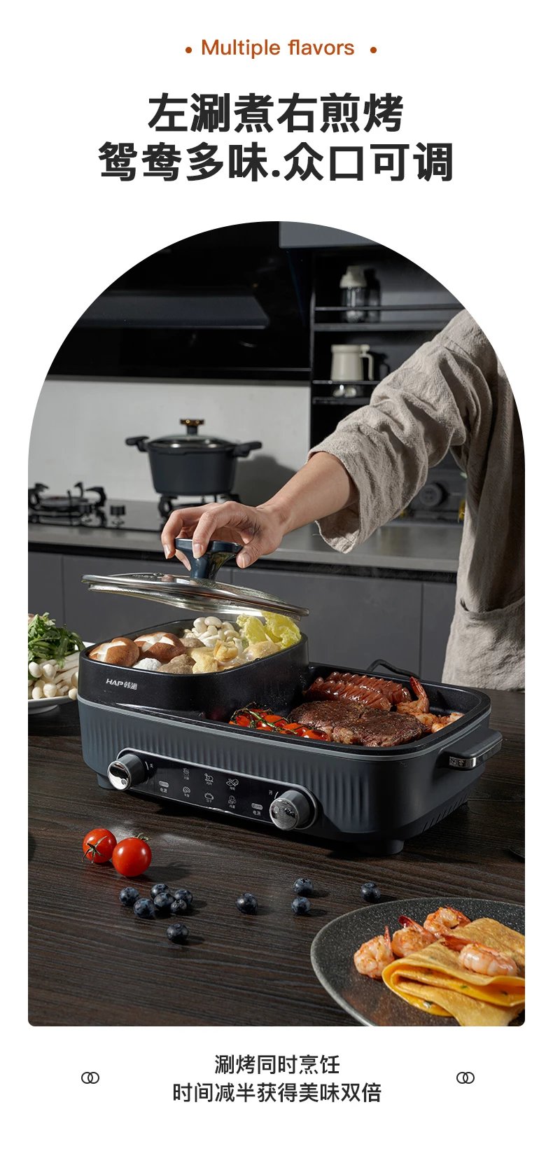 火锅+烤肉全都可!【HAP韩派涮烤一体锅G-41】左边火锅深锅设计涮煮不溢锅+右边烧烤轻松煎烤不易粘锅,可分区控温,煎烤焖煮涮样样精通!