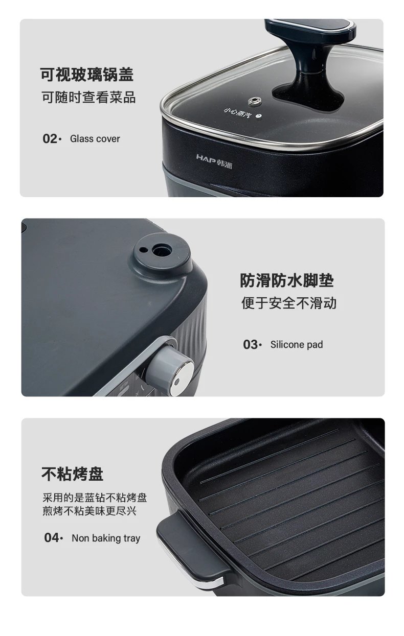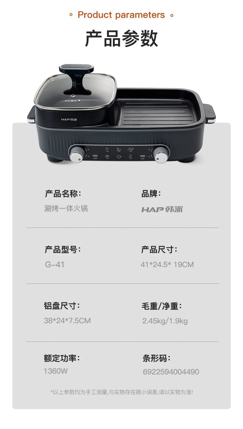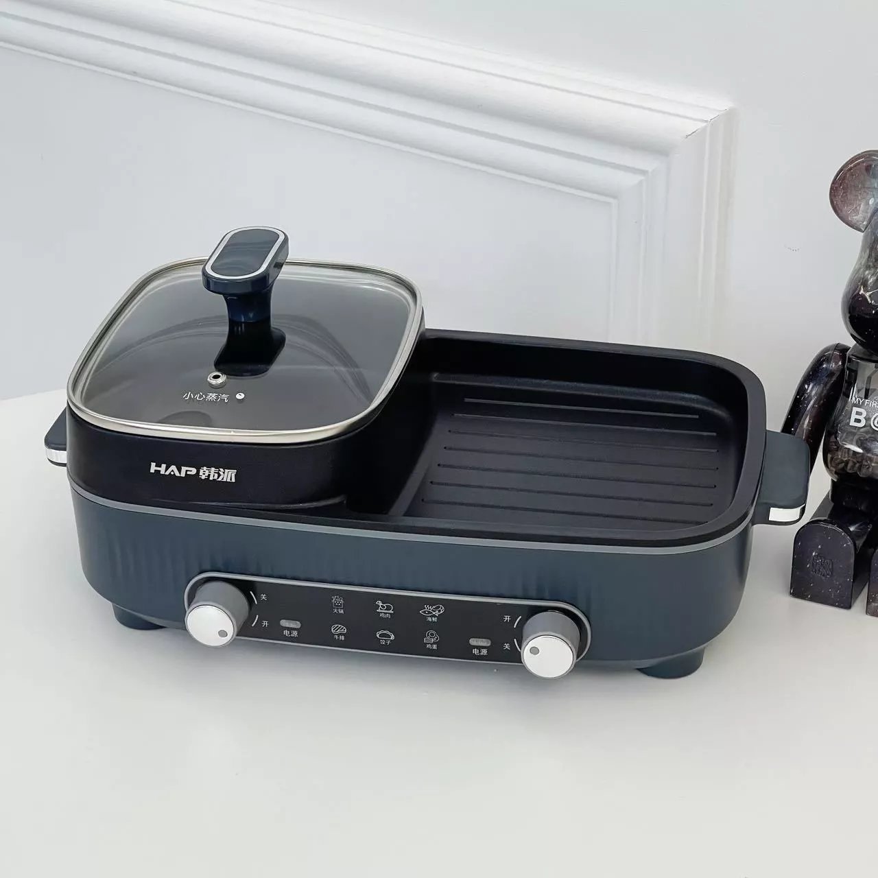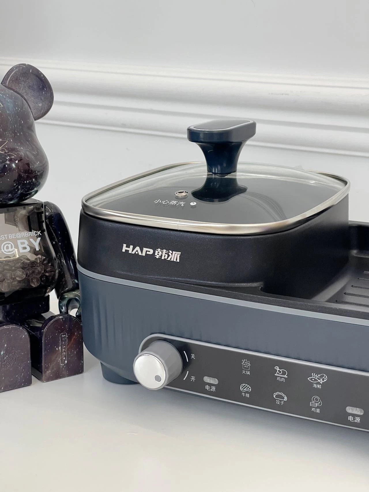 火锅+烤肉全都可!【HAP韩派涮烤一体锅G-41】左边火锅深锅设计涮煮不溢锅+右边烧烤轻松煎烤不易粘锅,可分区控温,煎烤焖煮涮样样精通!