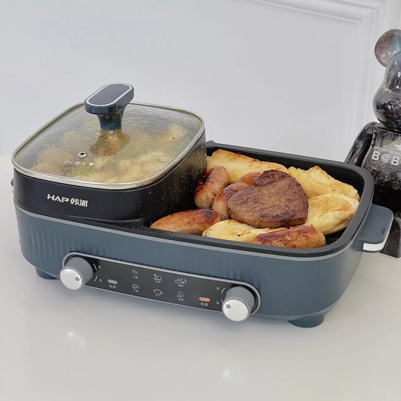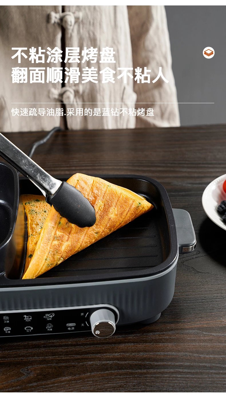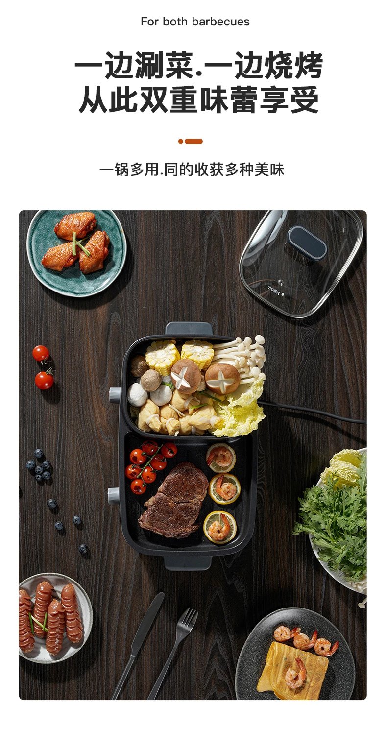 火锅+烤肉全都可!韩派 多功能料理锅!涮烤一体锅!可分区控温,不干扰单盘使用!