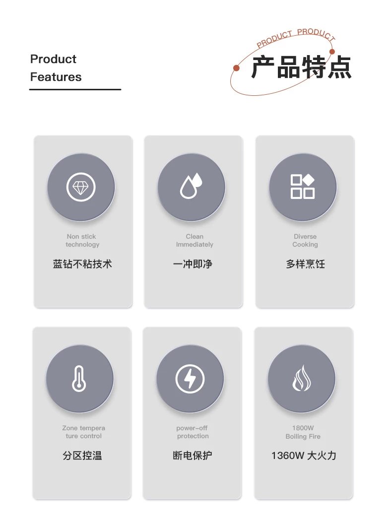 智能独立控温系统,火锅和烧烤盘均有独立开关