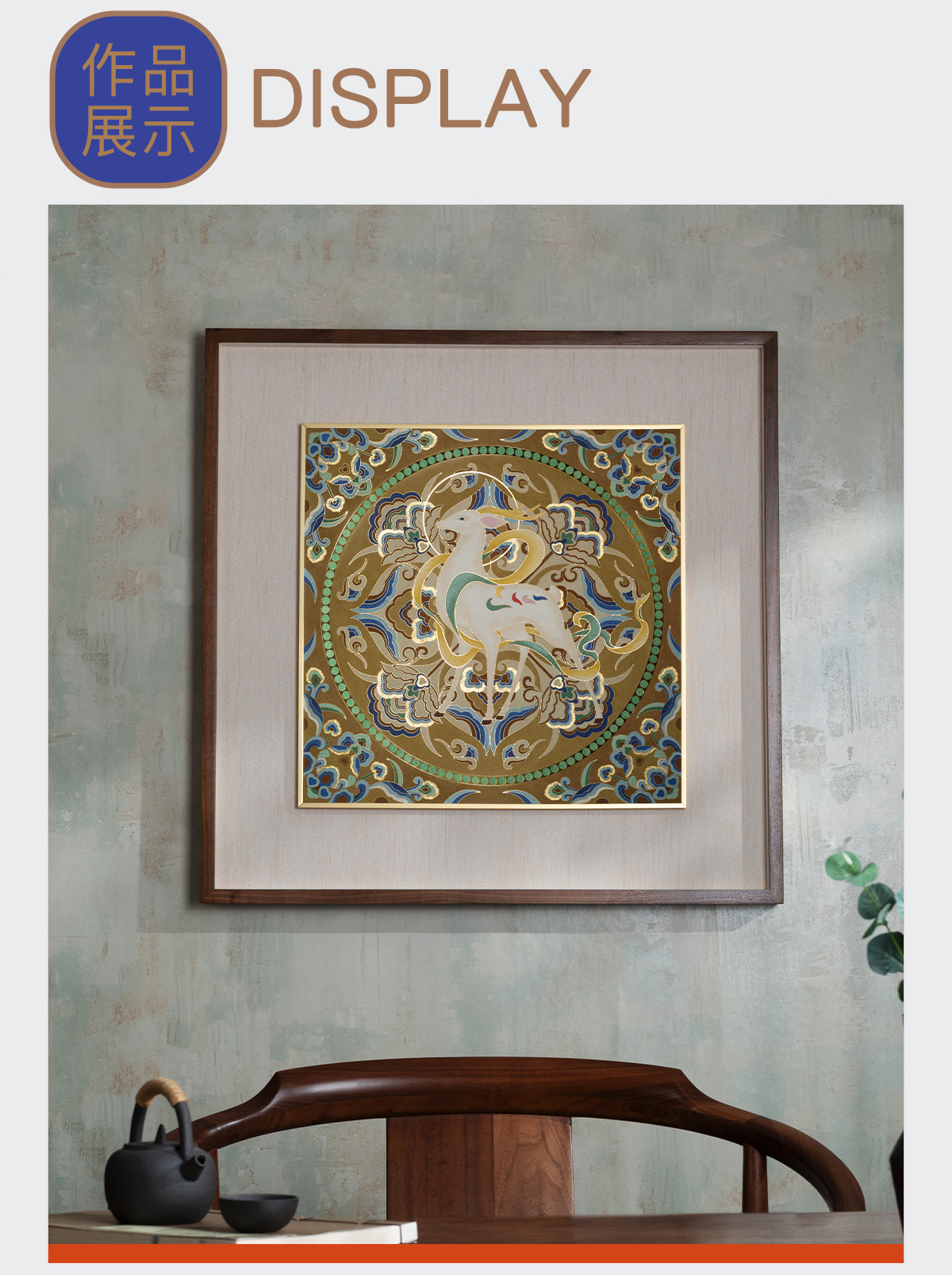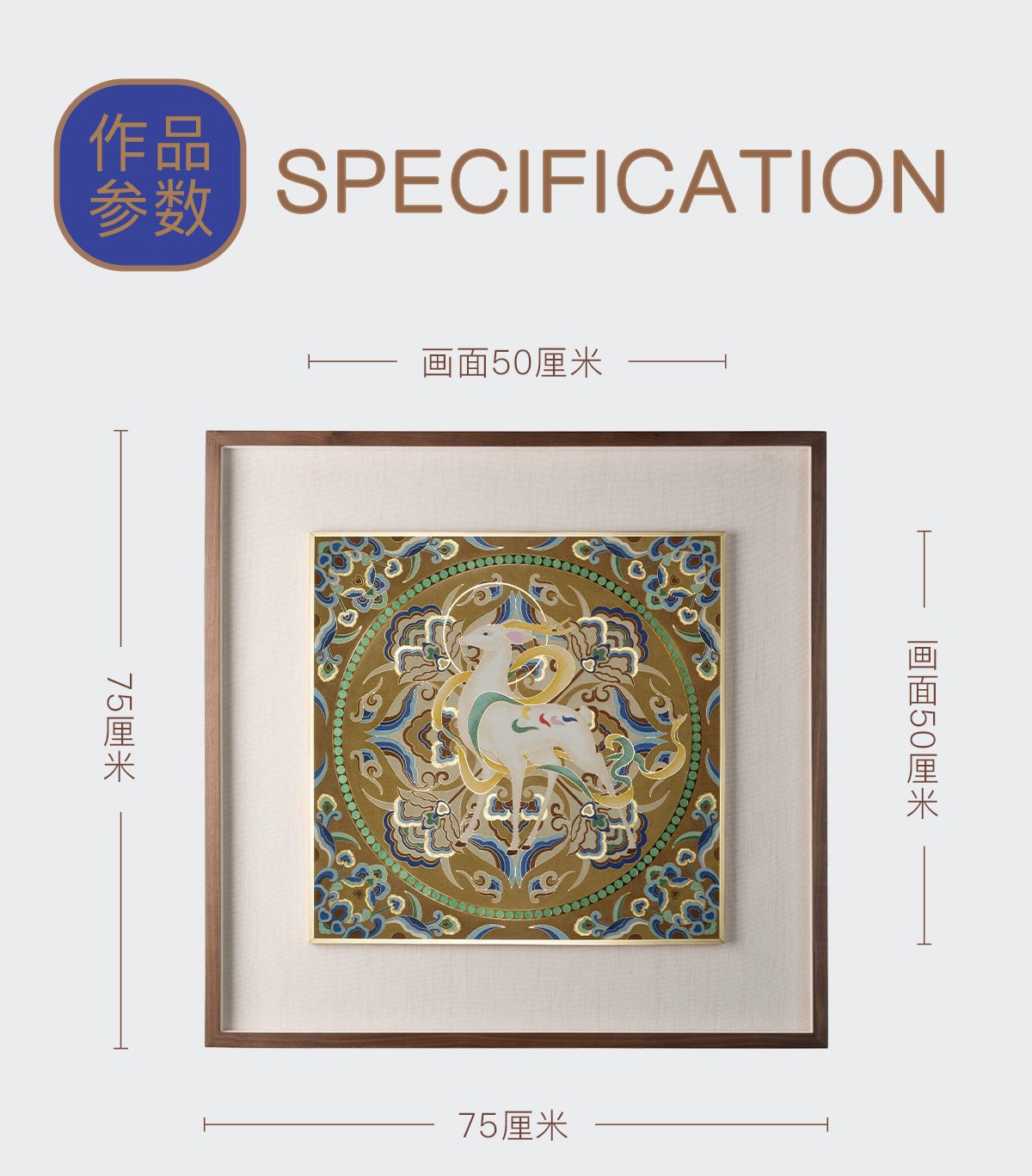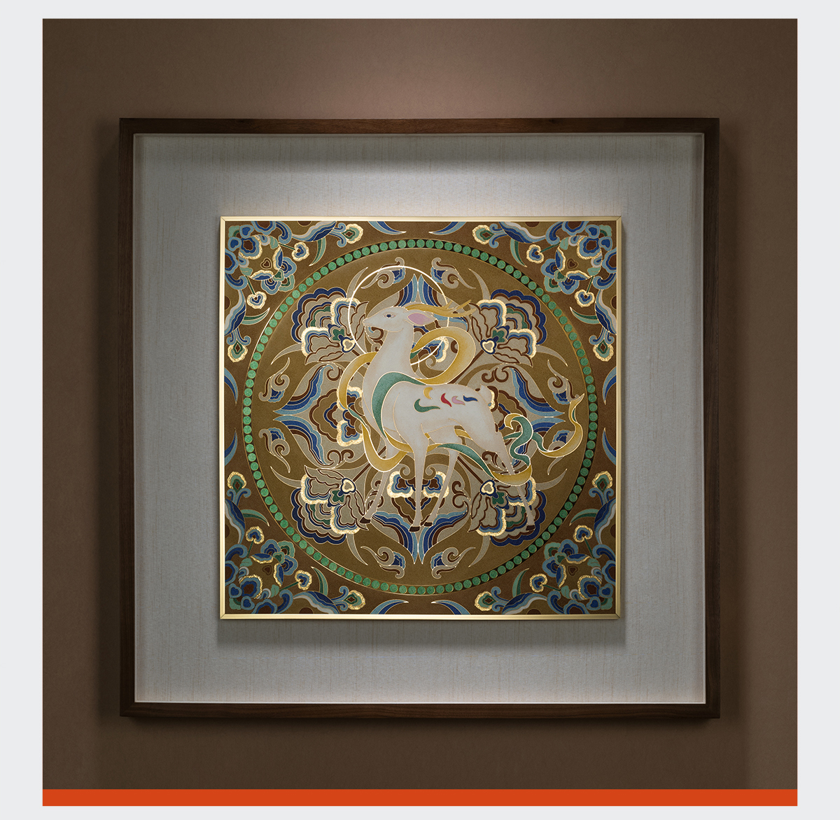 太铜 铜雕画《九色神鹿 景泰蓝画》客厅玄关沙发背景墙装饰画