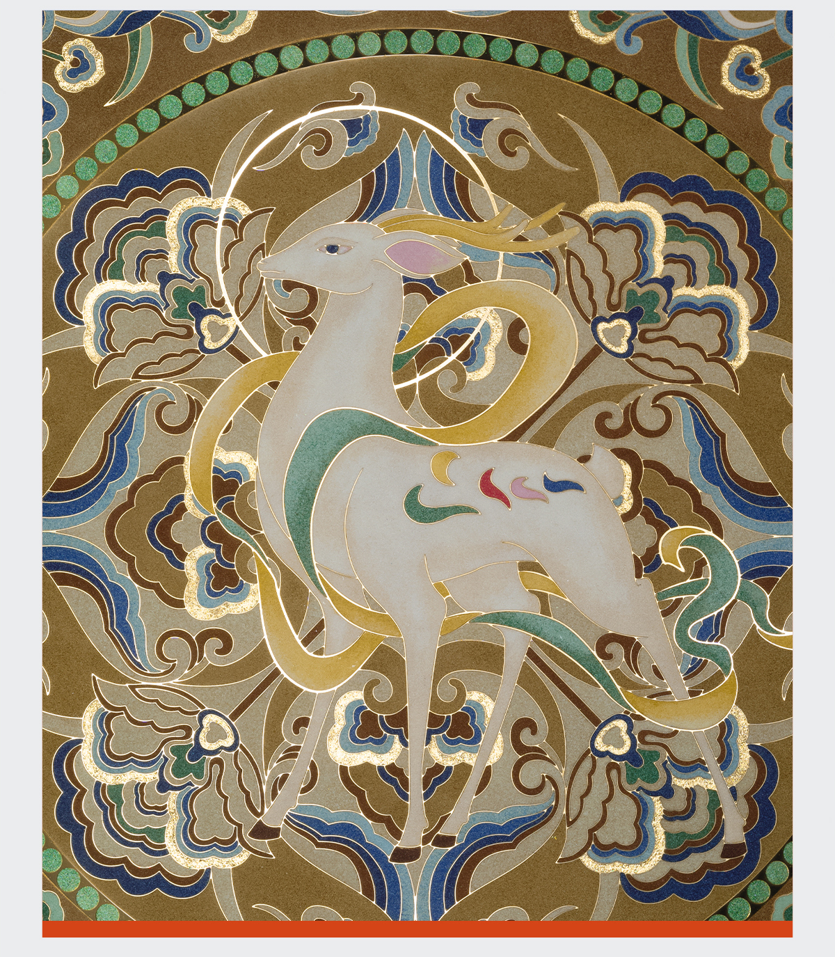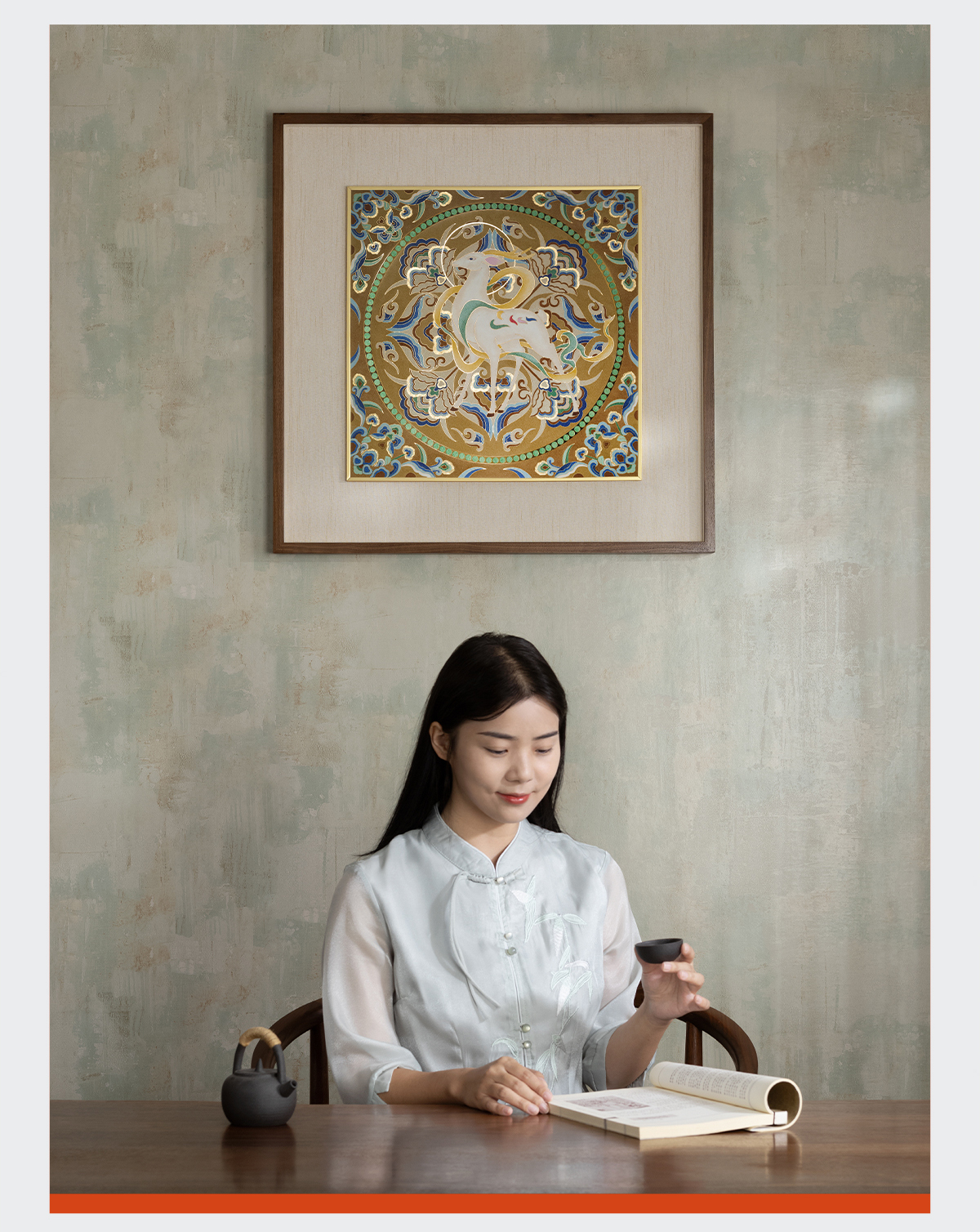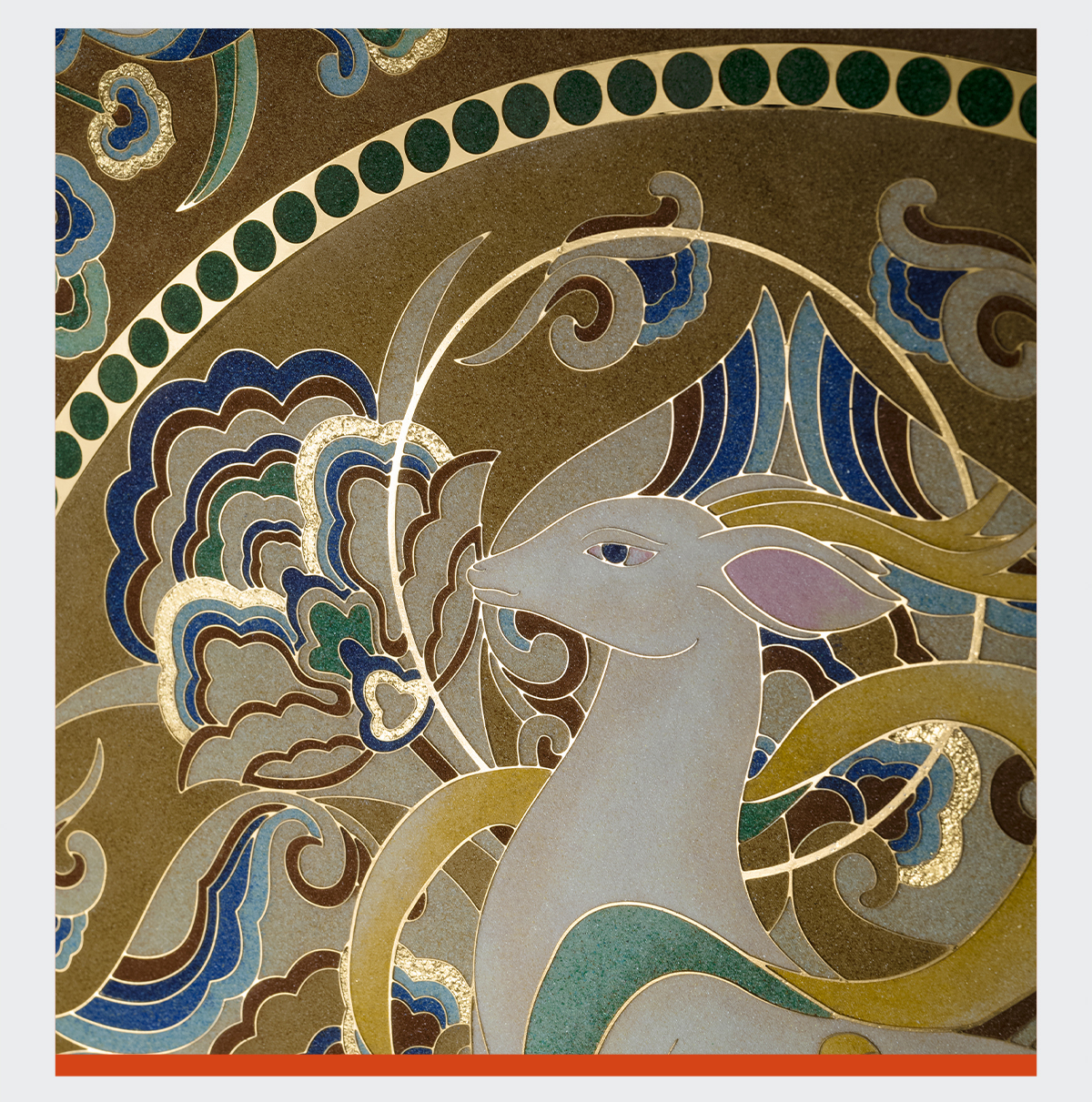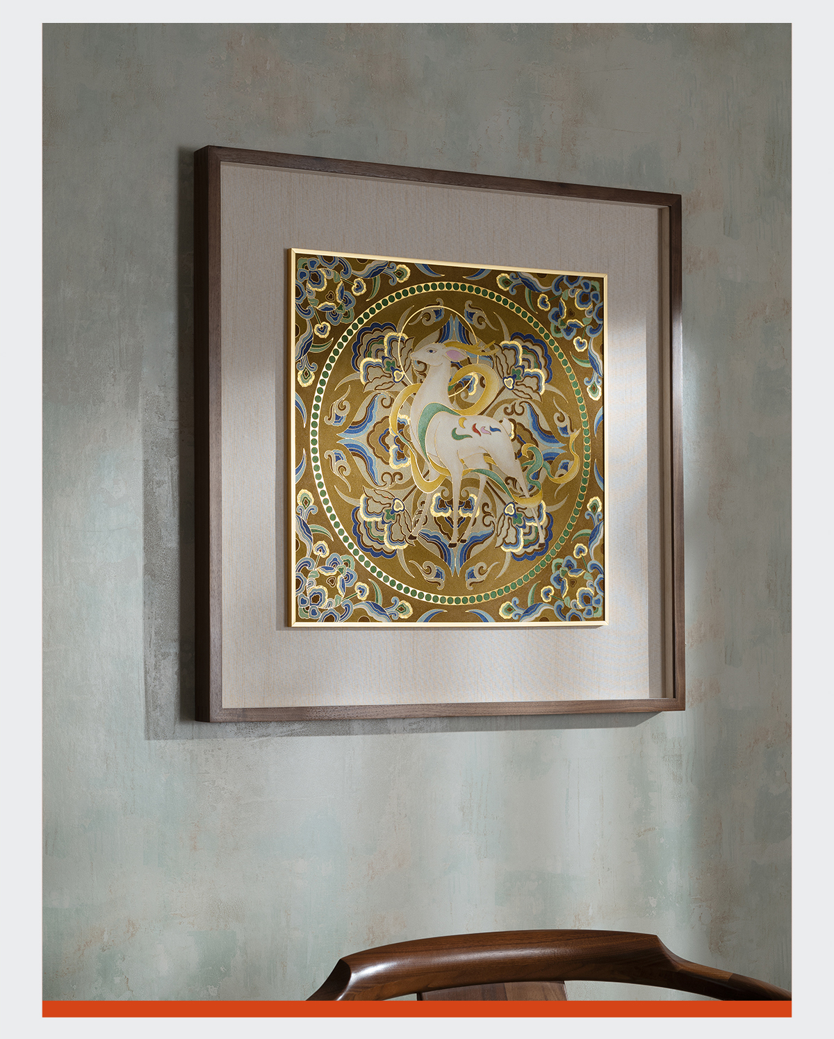 太铜 铜雕画《九色神鹿 景泰蓝画》客厅玄关沙发背景墙装饰画