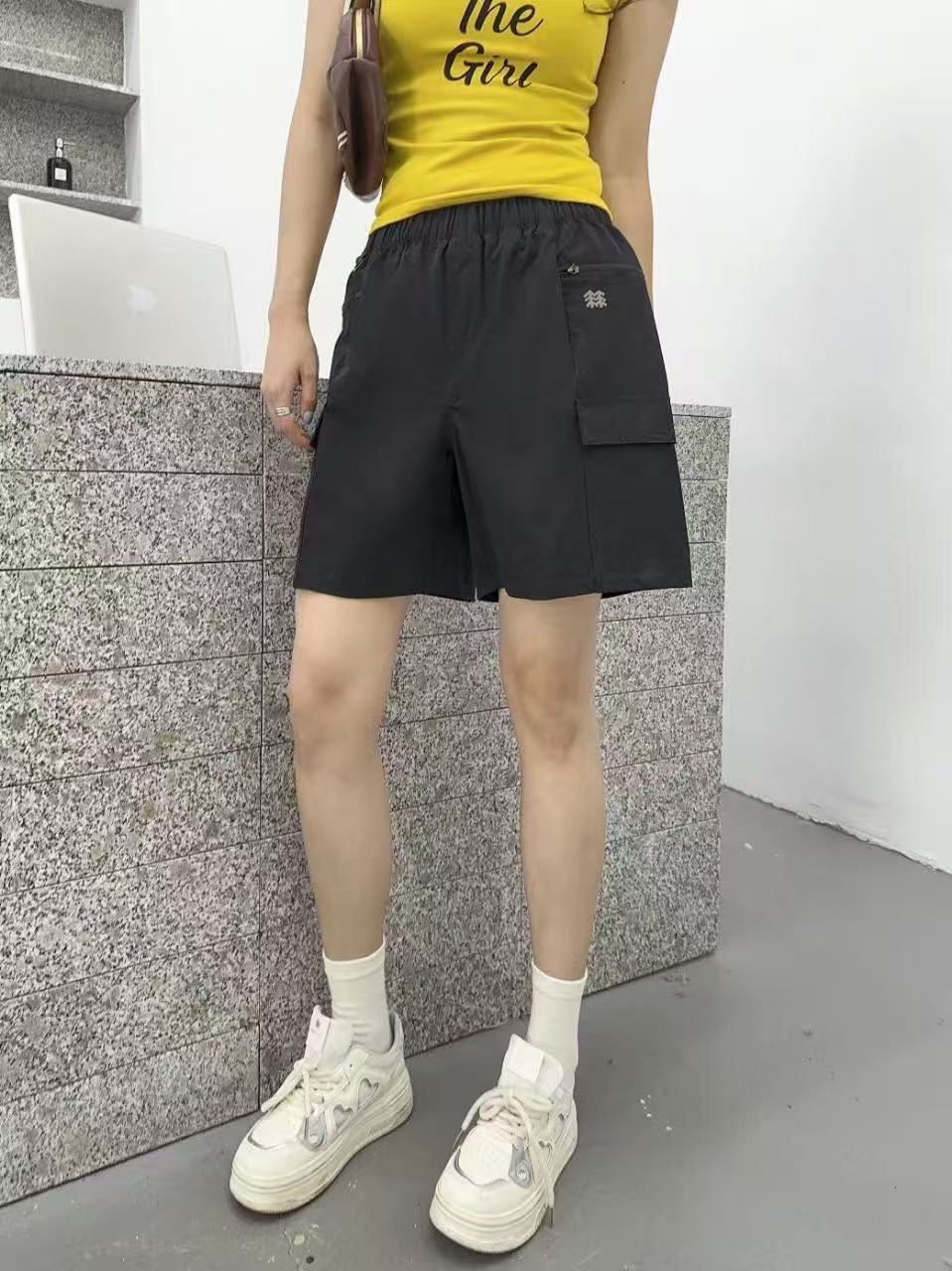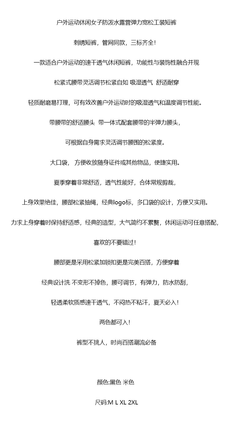 【9hd1】女士运动休闲防泼水弹力宽松工装短裤!!