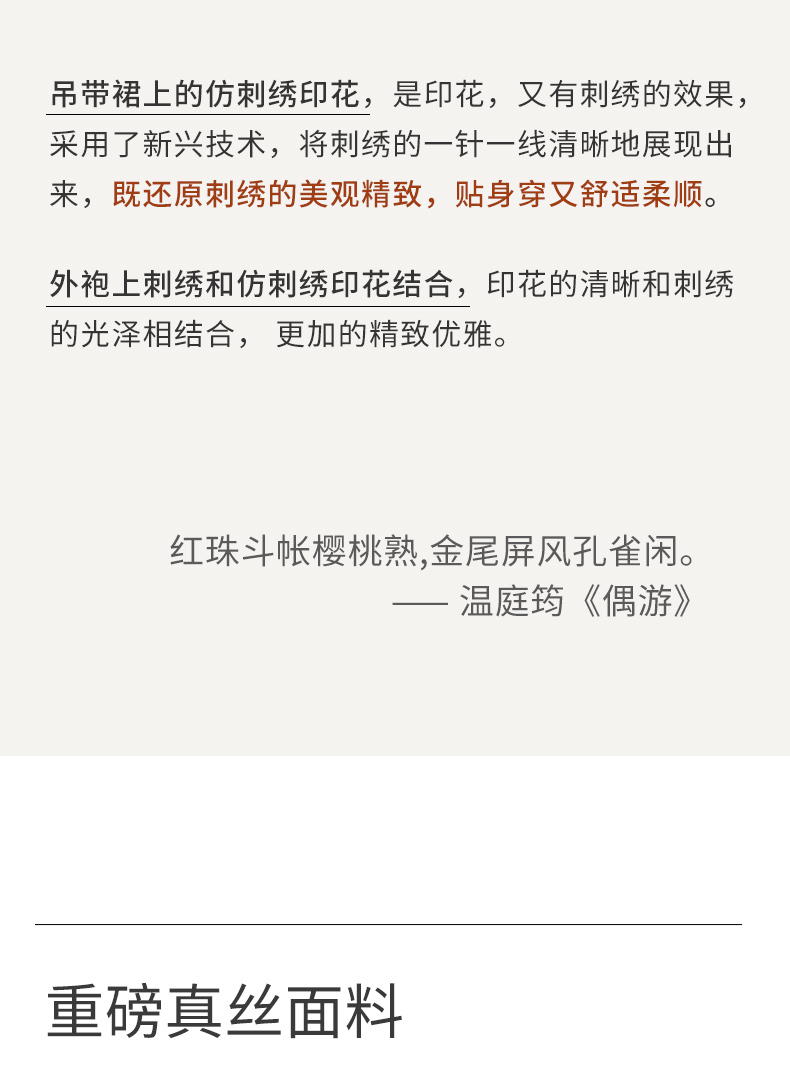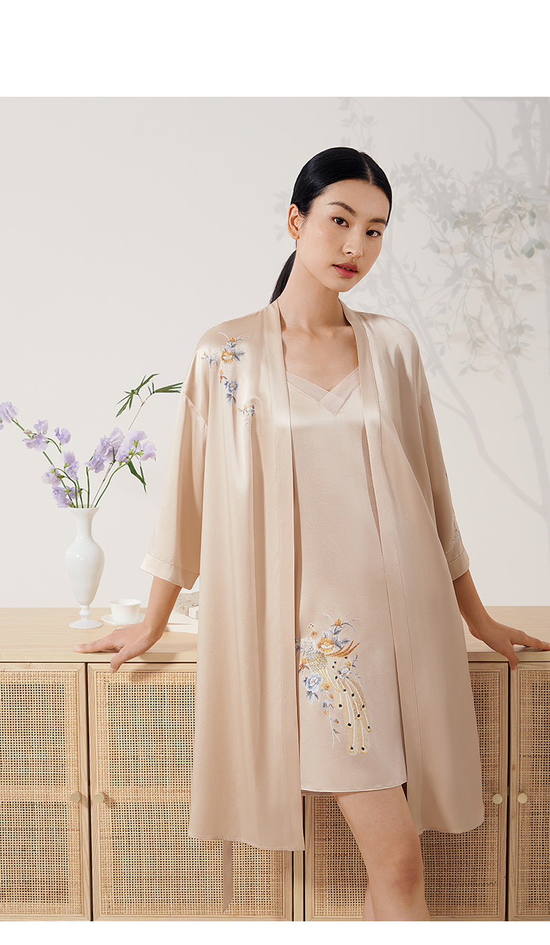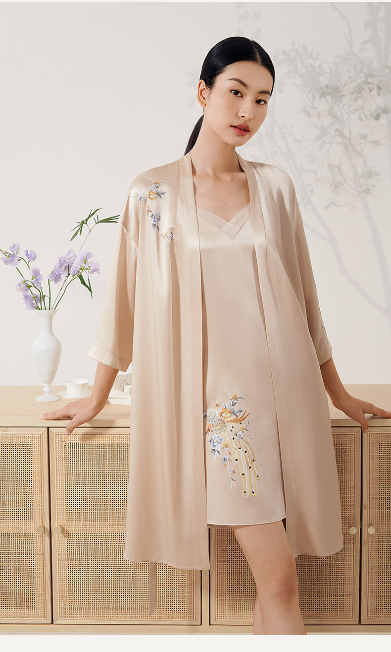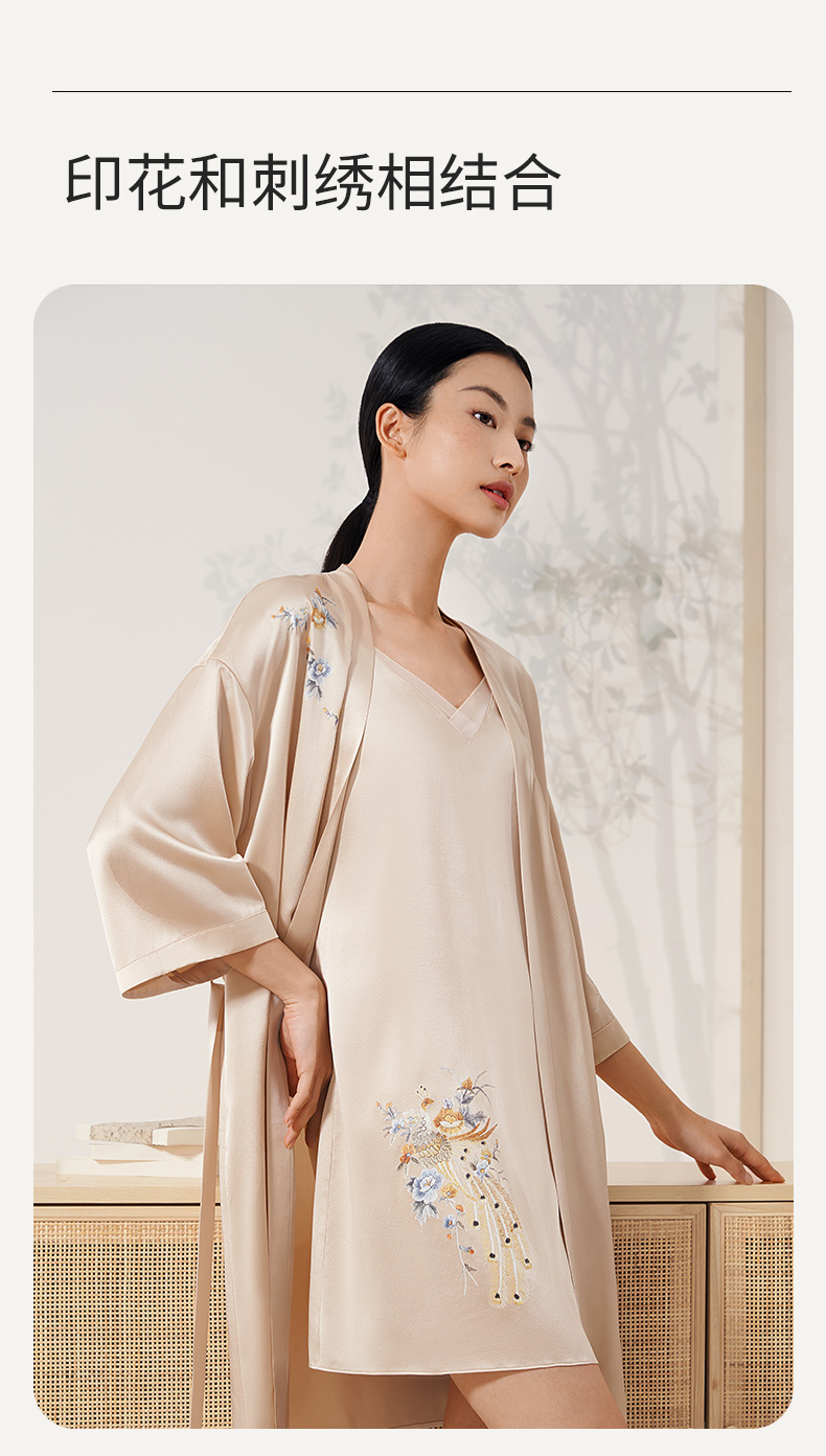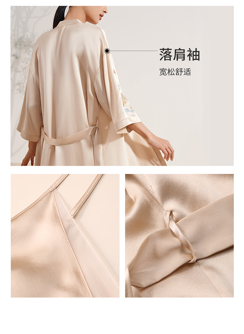 【刺绣印花】重磅真丝睡袍女100%桑蚕丝家居服吊带袍晨袍金三塔 YSFEA801