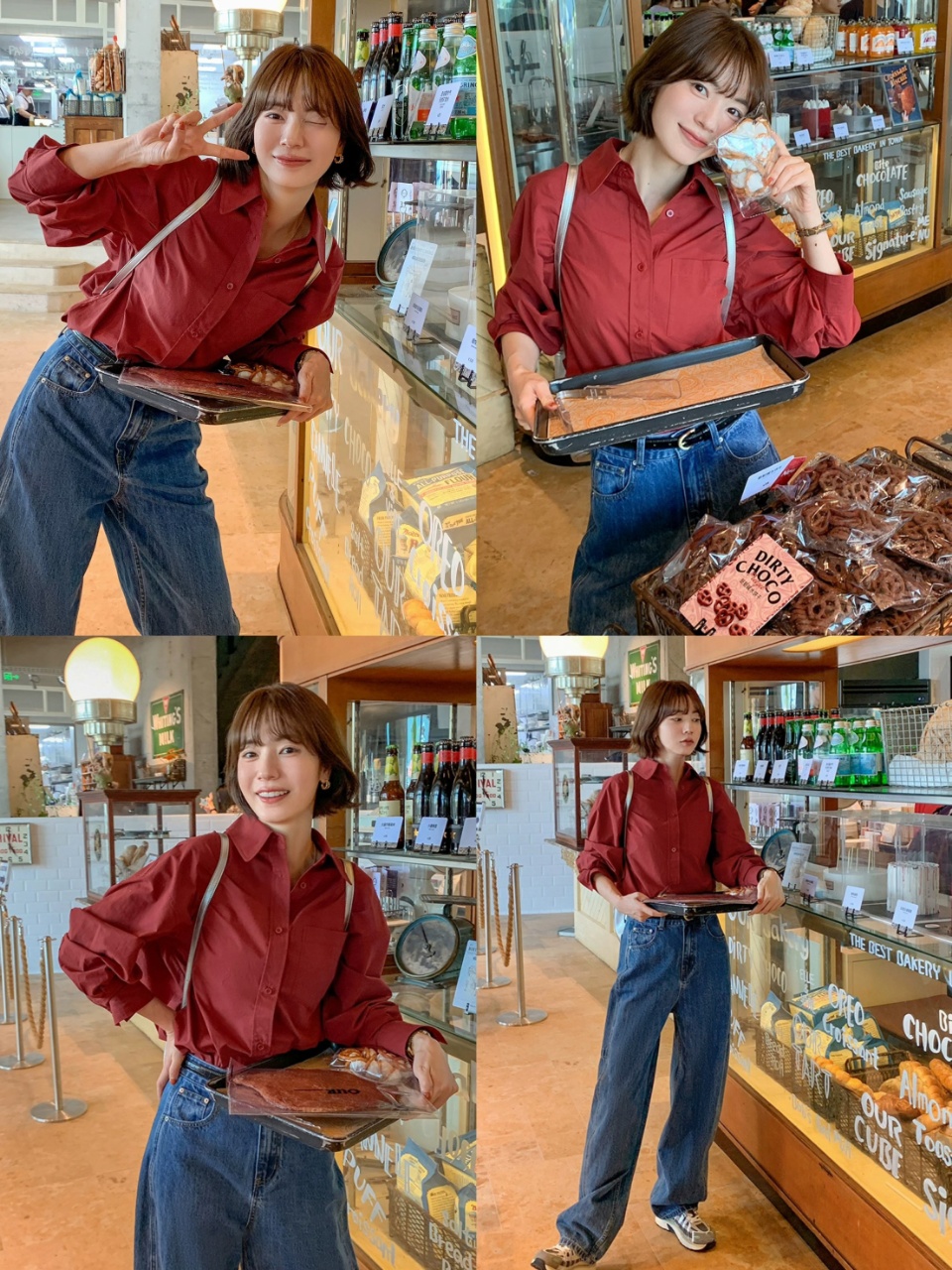 比起难以驾驭的大红色,车厘子红的色调仿佛自带高级感,上身松弛感拉满,特别显瘦显气质!