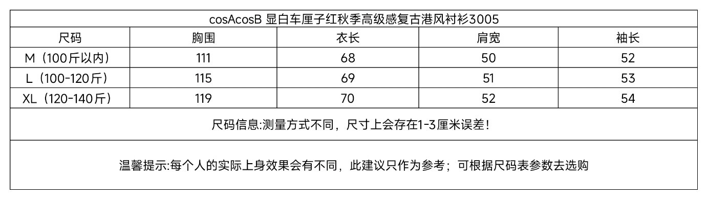 👉 XL码(适合120-140斤):胸围119/衣长70/肩宽52/袖长54
