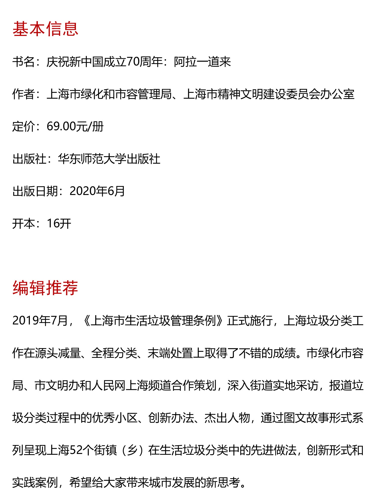 阿拉一道来 52个街镇生活垃圾分类故事 上海市绿化和市容管理局 编著 人民网 上海频道 合作策划 正版 华东师范大学出版社