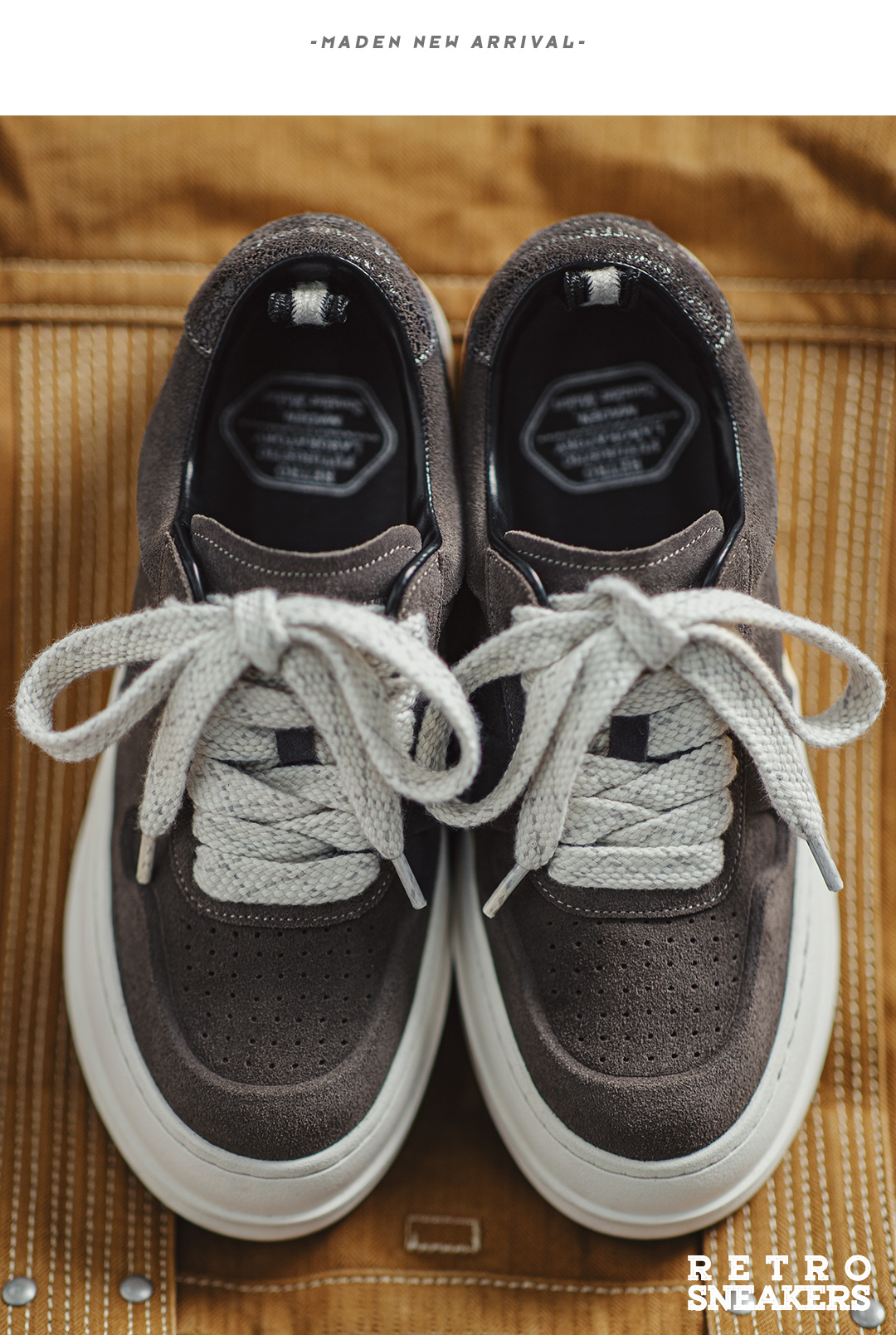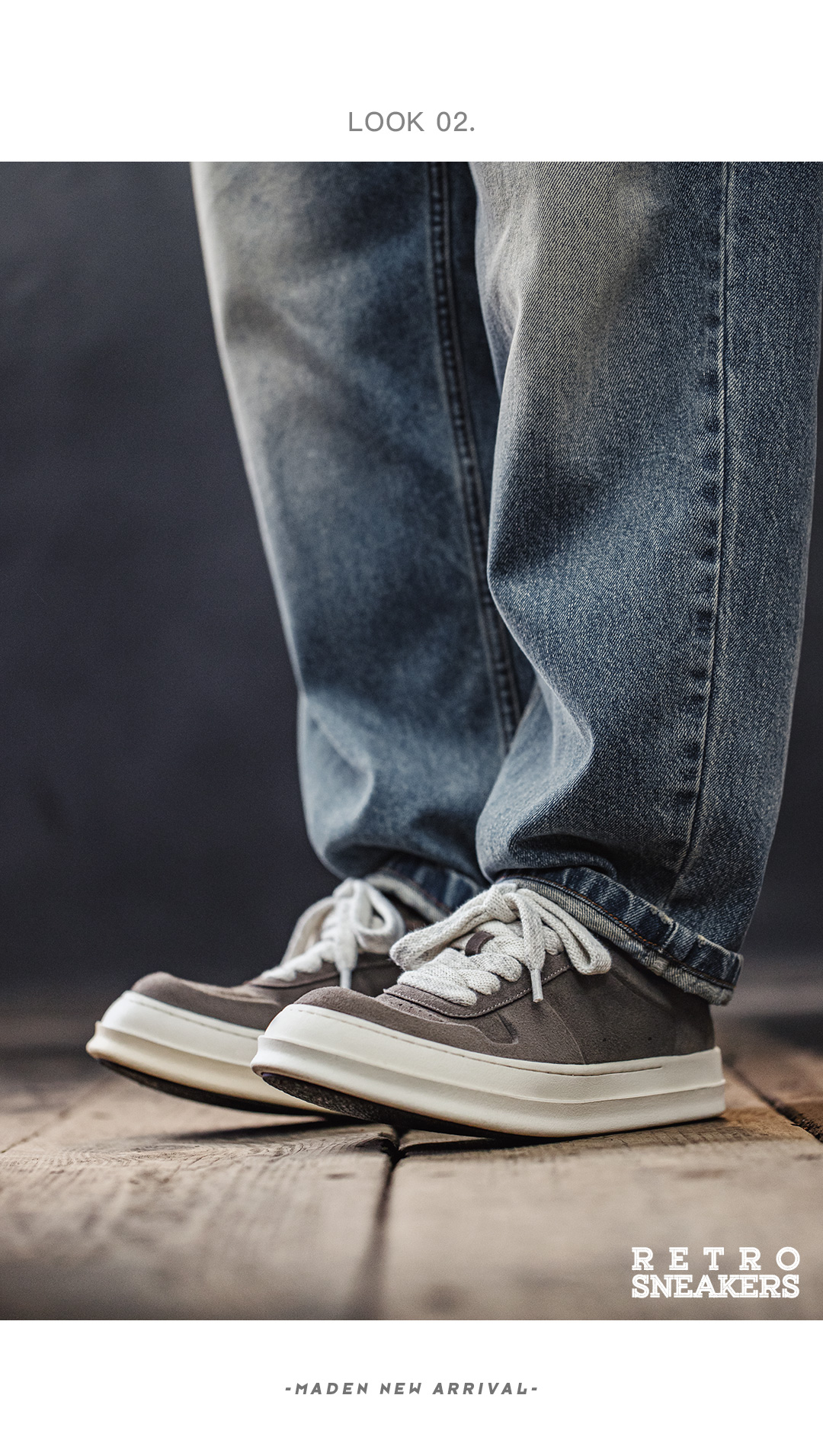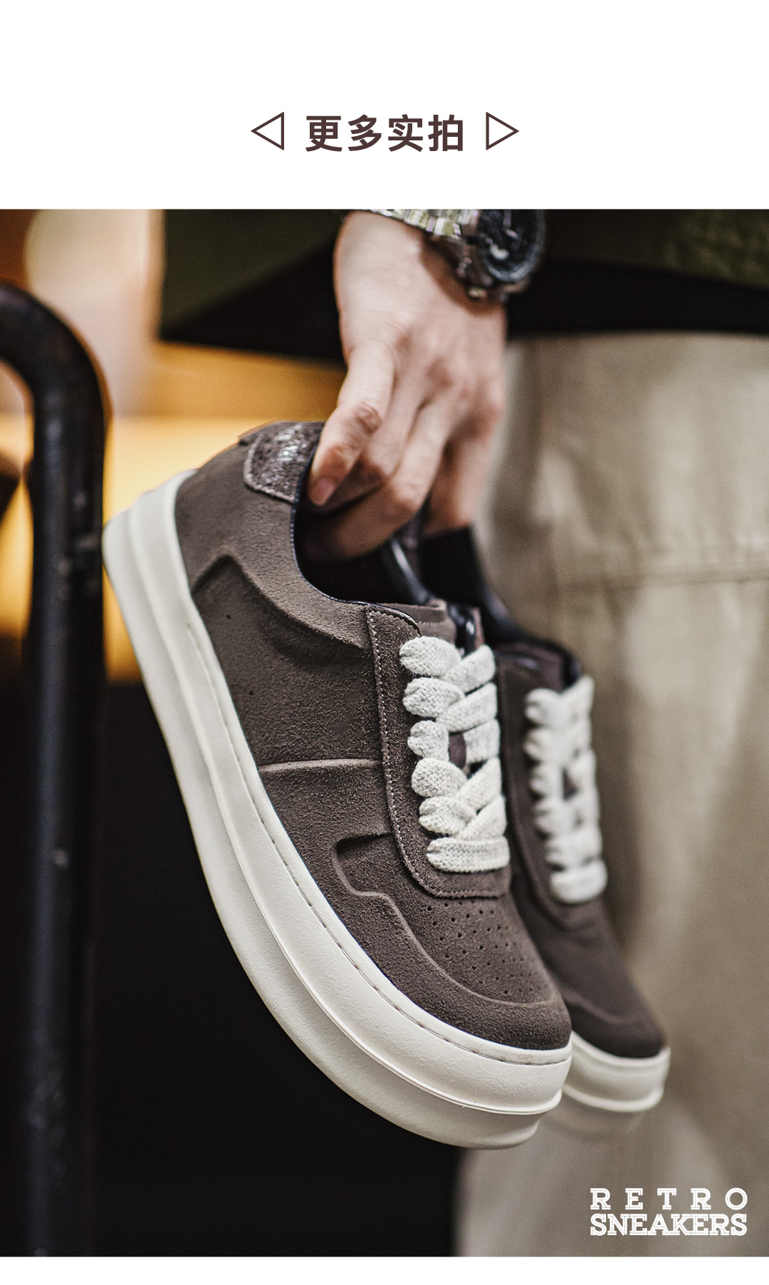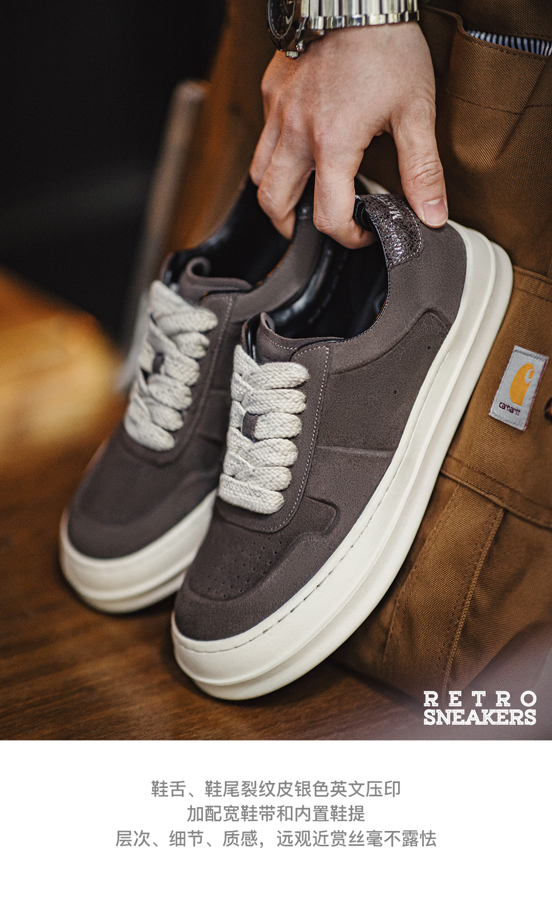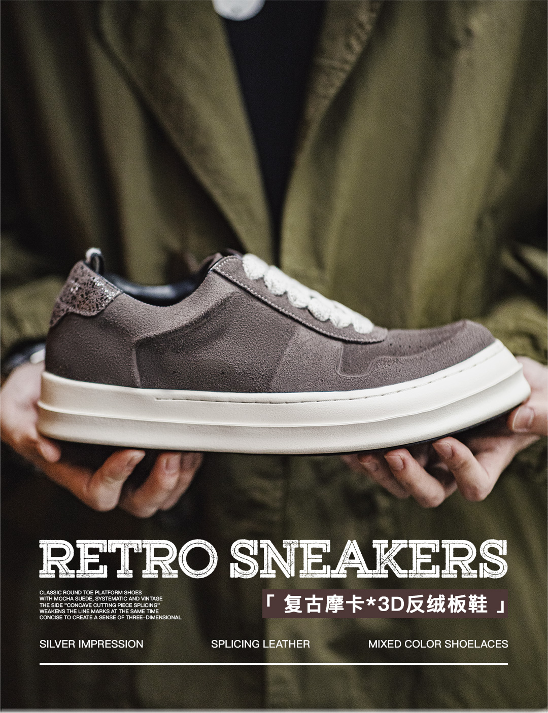 马登春季新款复古皮鞋男潮鞋厚底低帮百搭美式休闲增高真皮板鞋