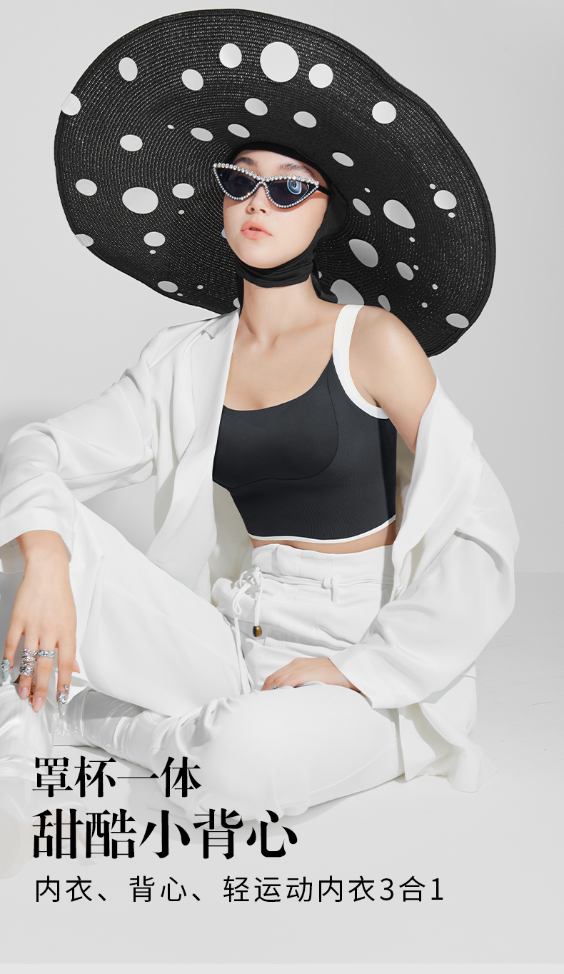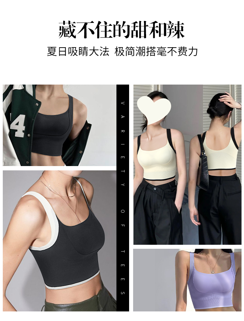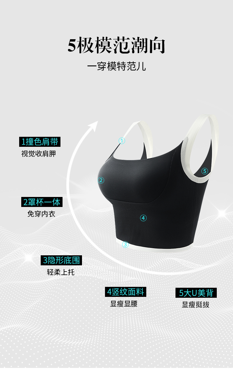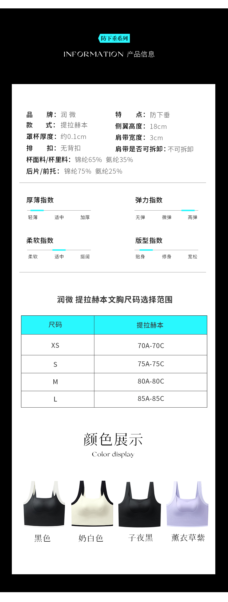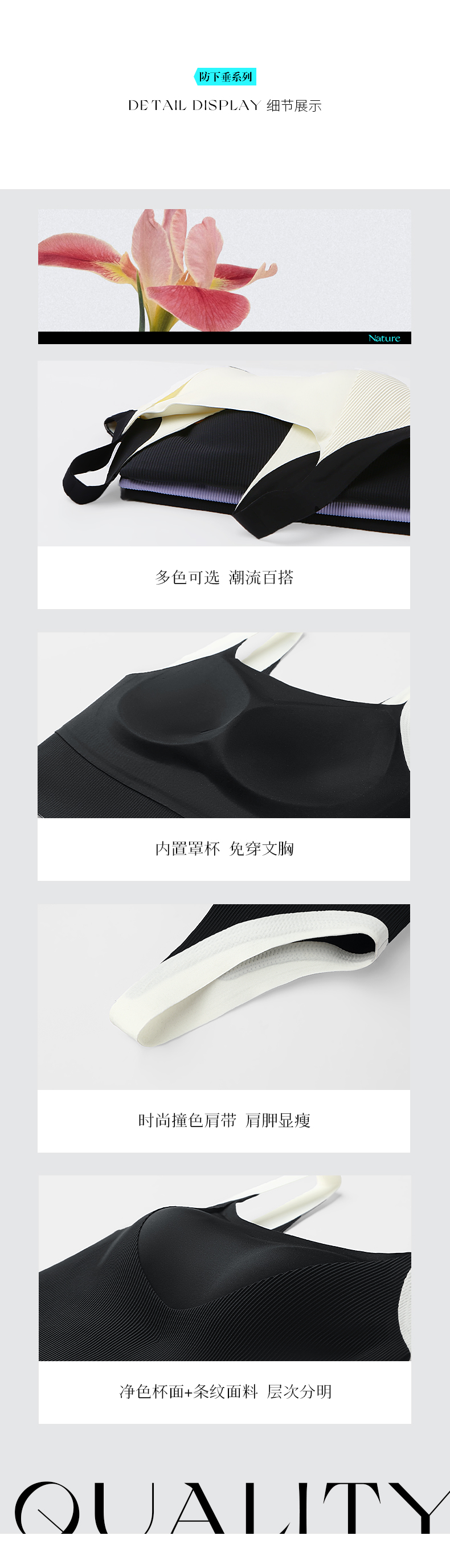 T2-❤【A-C杯】提拉撞色内衣女小胸聚拢防下垂收副乳调整型自带胸垫背心文胸 提拉赫本【提拉系列】