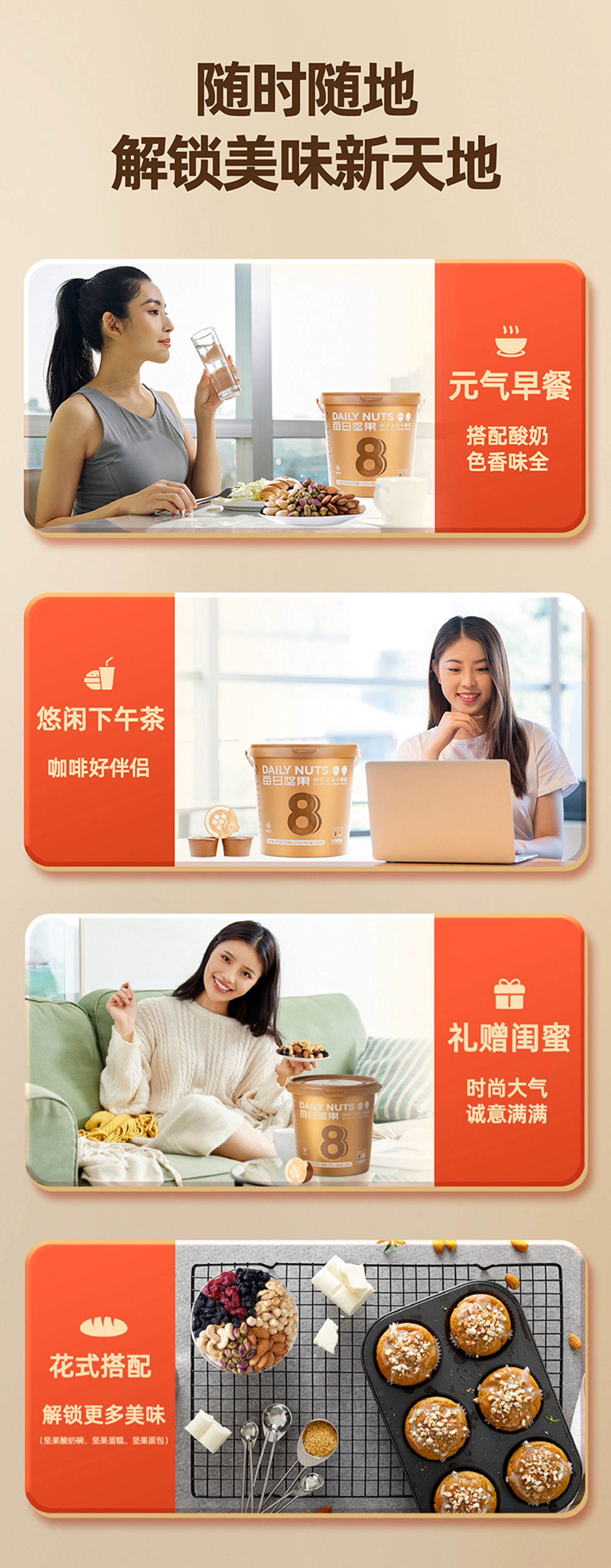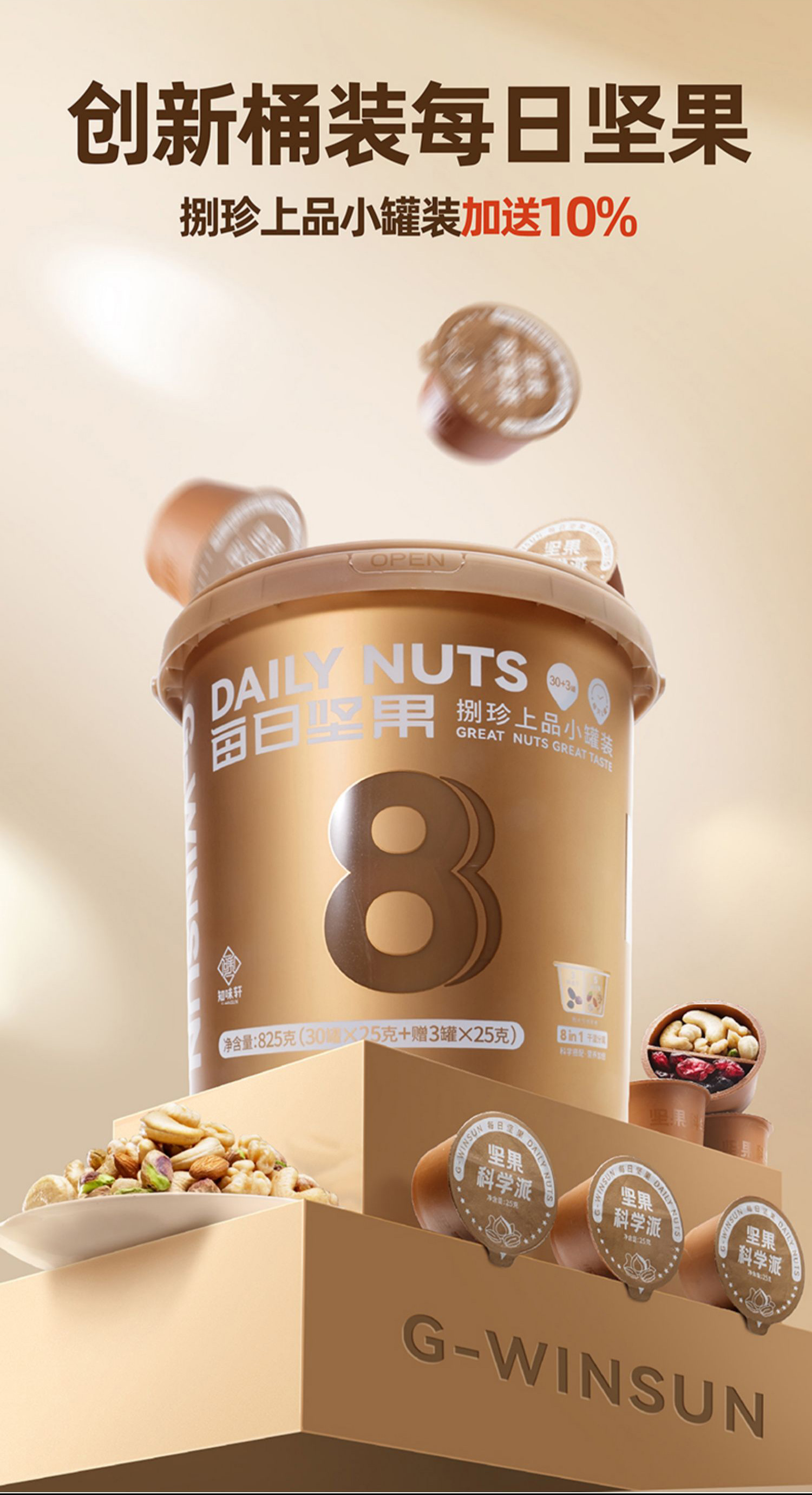 【每日坚果】八种好料、零添加、科学配比、原色原香、独立罐装、干湿分离、携带方便
