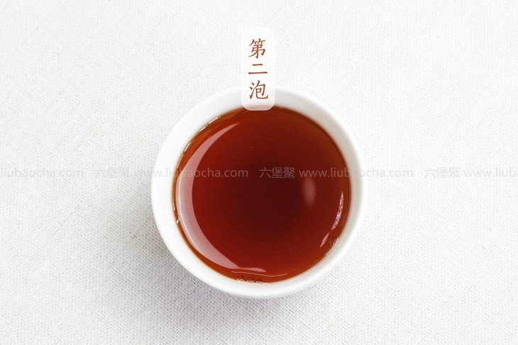 【茶汤】茶汤红浓莹润,槟榔香浓郁,伴有淡淡的窖香;入口甘醇、爽滑,回甘显著,有丝丝甘凉的喉韵,茶气足;尾水甜润,较耐泡。