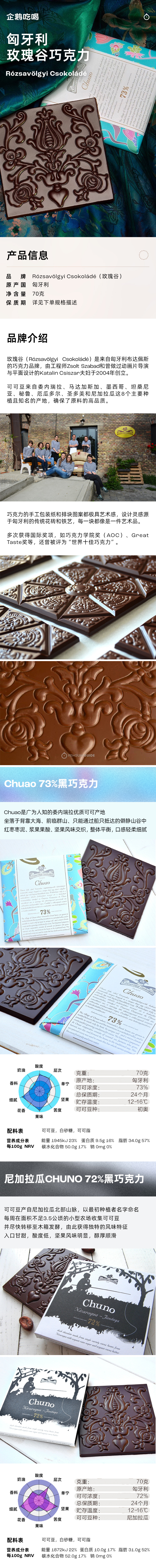 企鹅市集|匈牙利 玫瑰谷巧克力70g 黑巧/奶巧/白巧/增味 艺术感十足