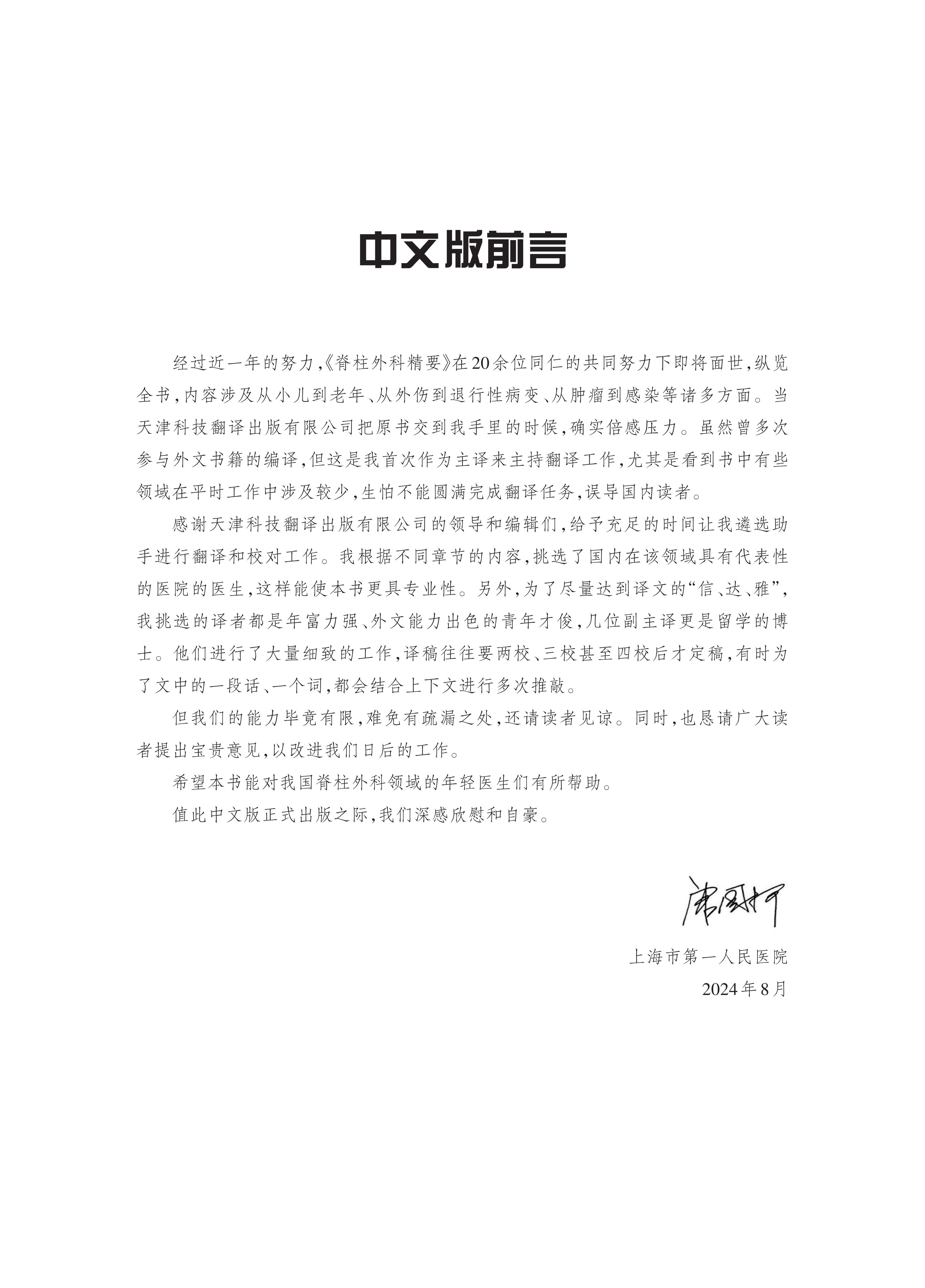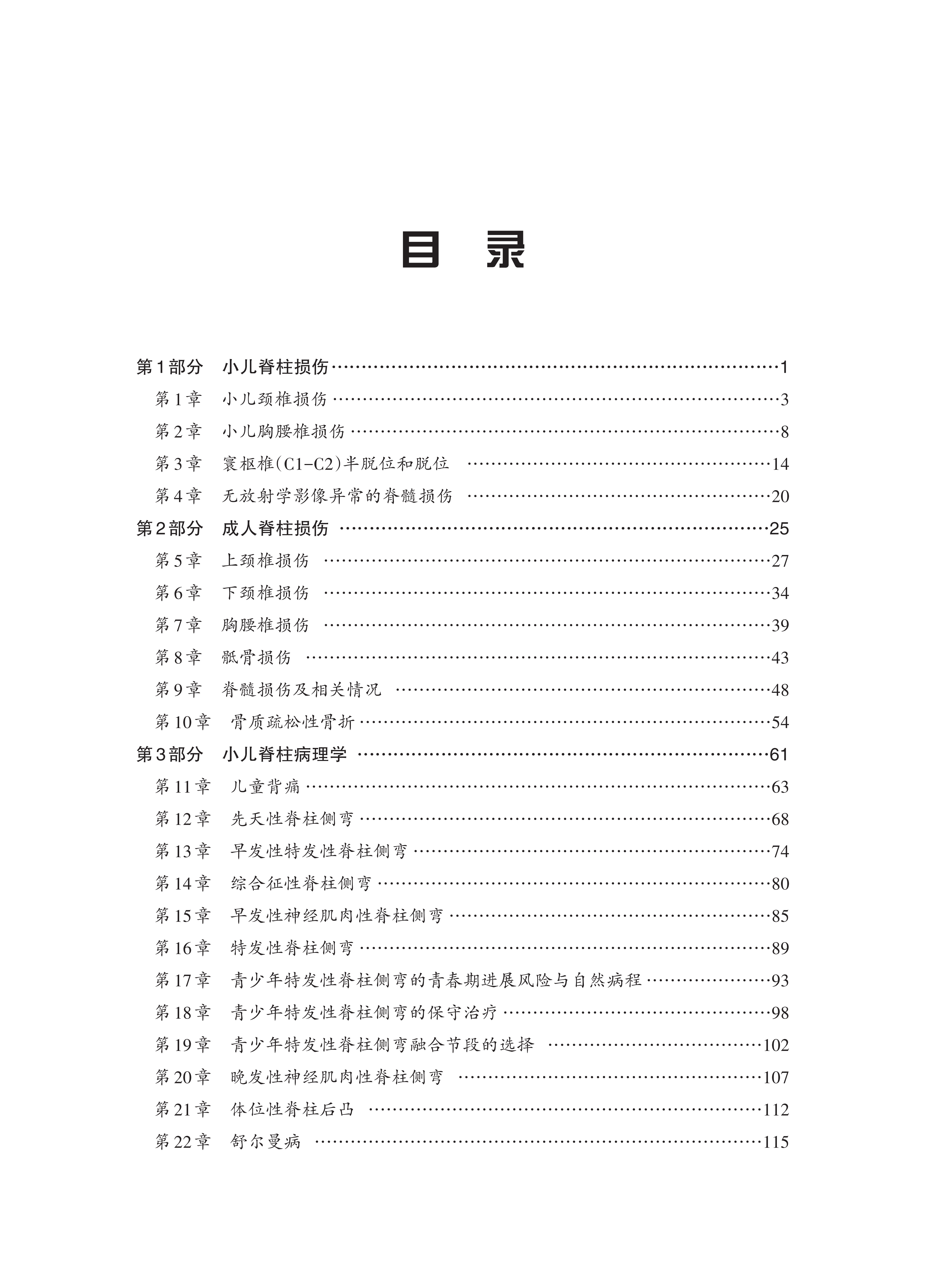 《脊柱外科精要》是一本全面介绍脊柱外科专业知识的综合性指南,通过精心编排和详细阐述,向读者介绍了脊柱外科各个方面的主题。本书分别探讨了儿童和成人的脊柱损伤、脊柱病理学,内容涵盖了损伤、感染、畸形、退行性病变等,对脊柱外科进行了全面概述。本书的内容兼具专业性和实用性,能够为临床医生提供有价值的参考。