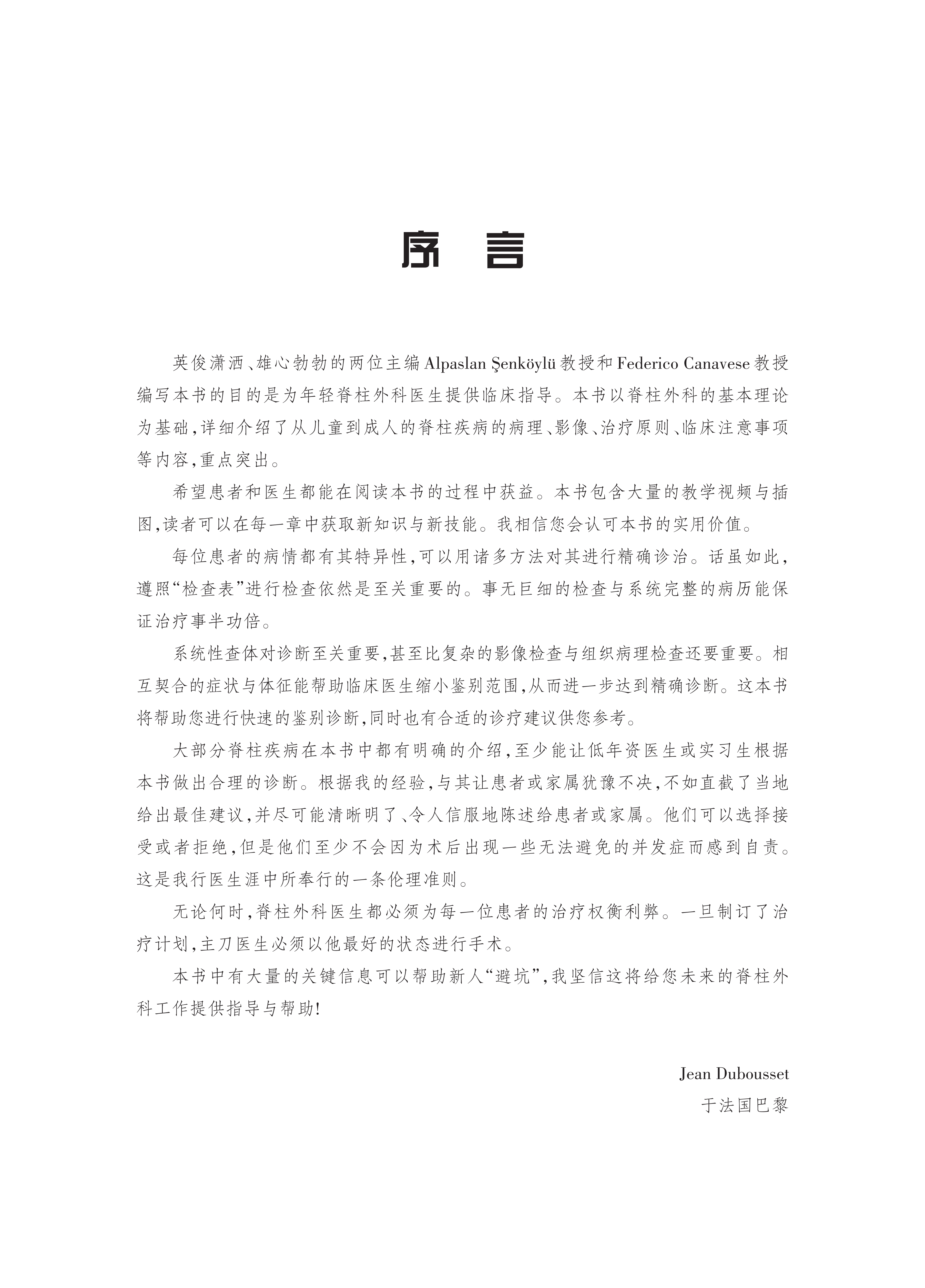 费德里科·卡纳维塞(Federico Canavese),医学博士,法国里尔大学医学院小儿骨外科教授,主要研究方向为脊柱发育,包括脊柱生长、神经肌肉脊柱侧弯和早发性脊柱侧弯,并对儿科创伤学有所涉猎。