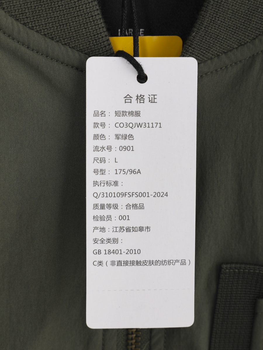 【云粉节】【95折】6楼卡特CAT秋冬款短款棉服军绿色CO3QJW31171C76,吊牌价1098,现价1043