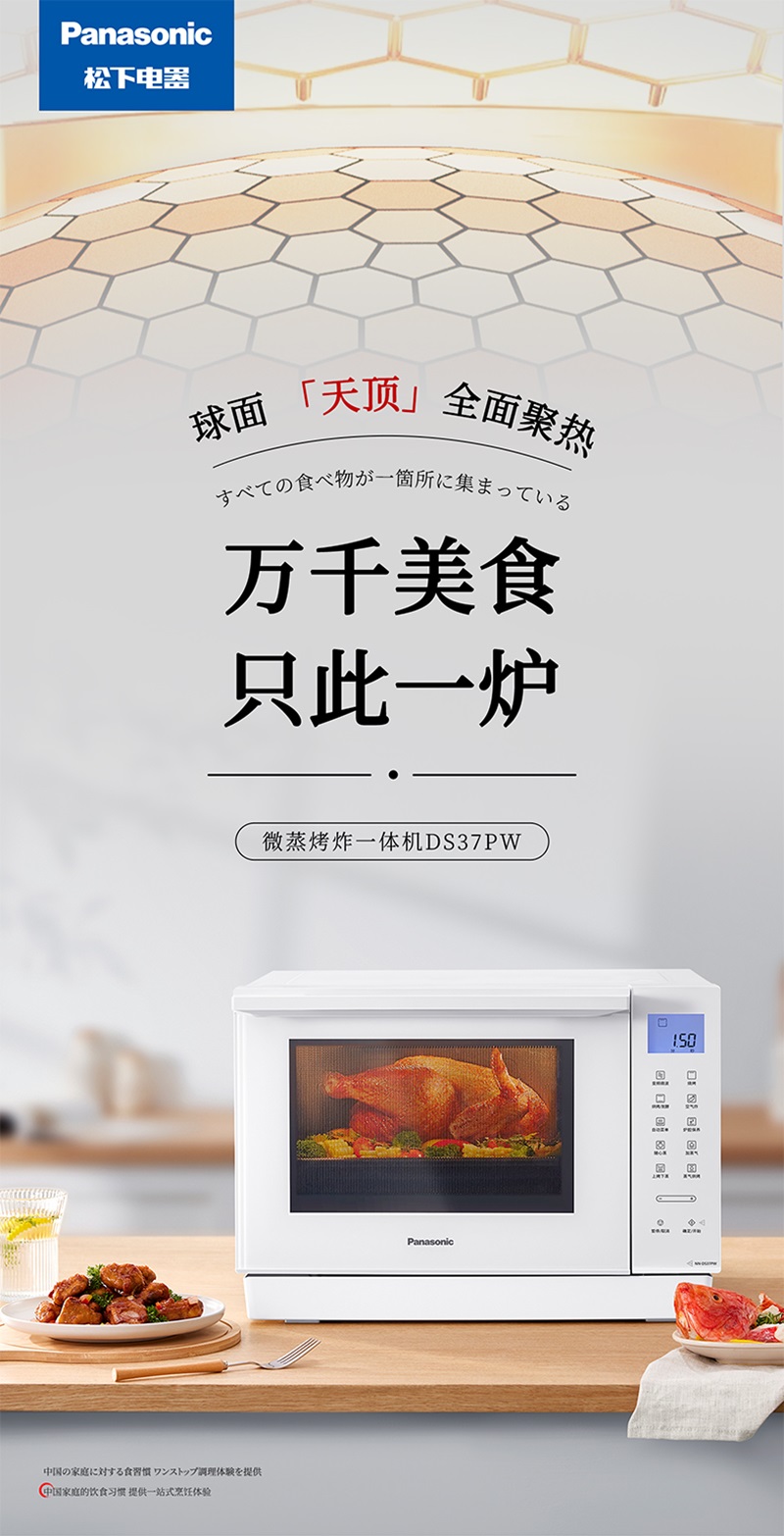 【云粉节】10楼 松下(Panasonic)上烤下蒸万食炉高效速热均匀着色23L家用台式变频微蒸烤炸一体机 DS37吊牌价2199元 活动价1899元