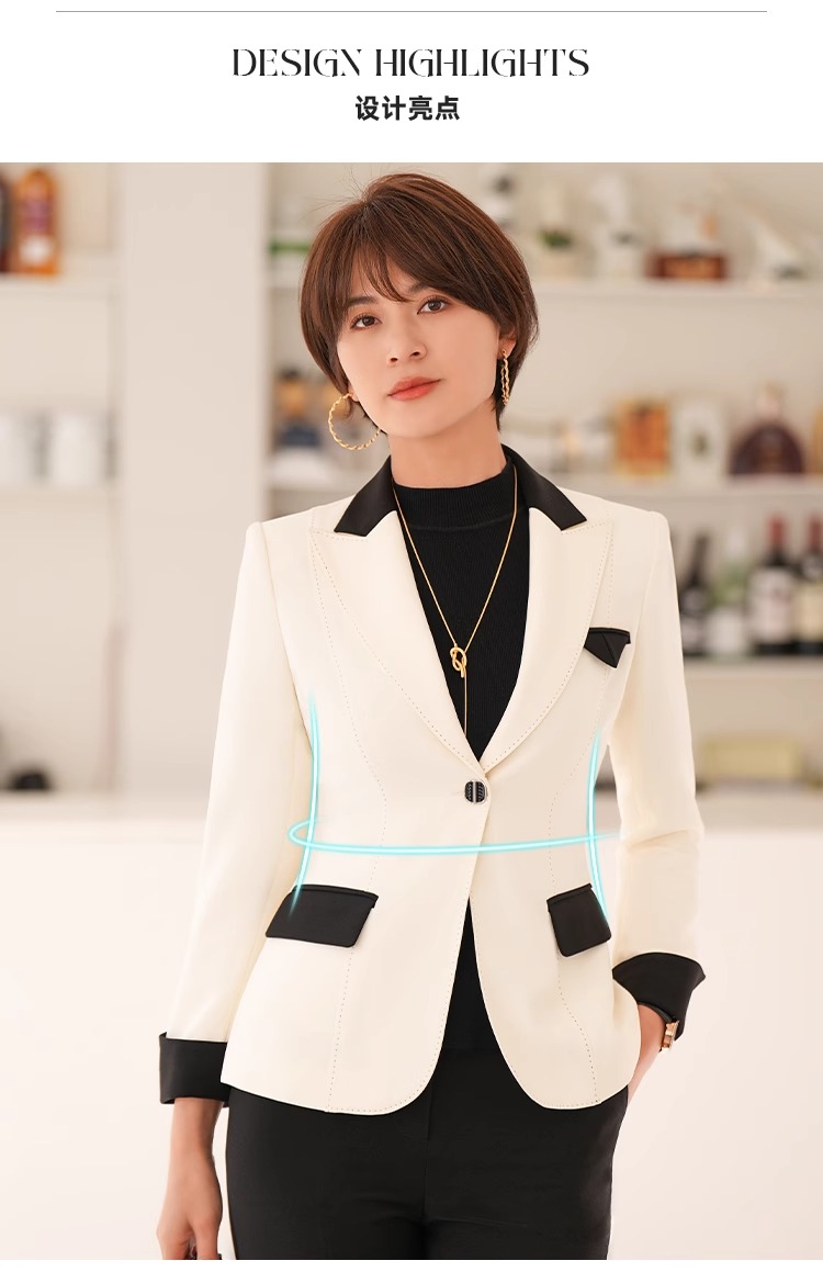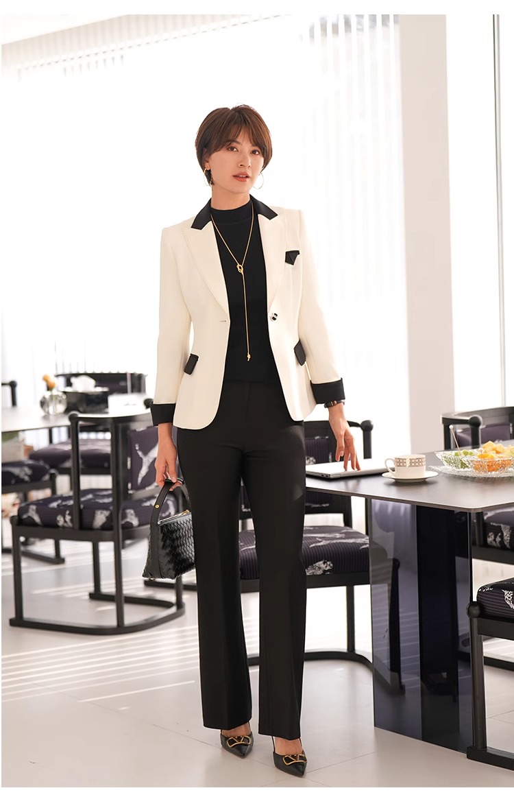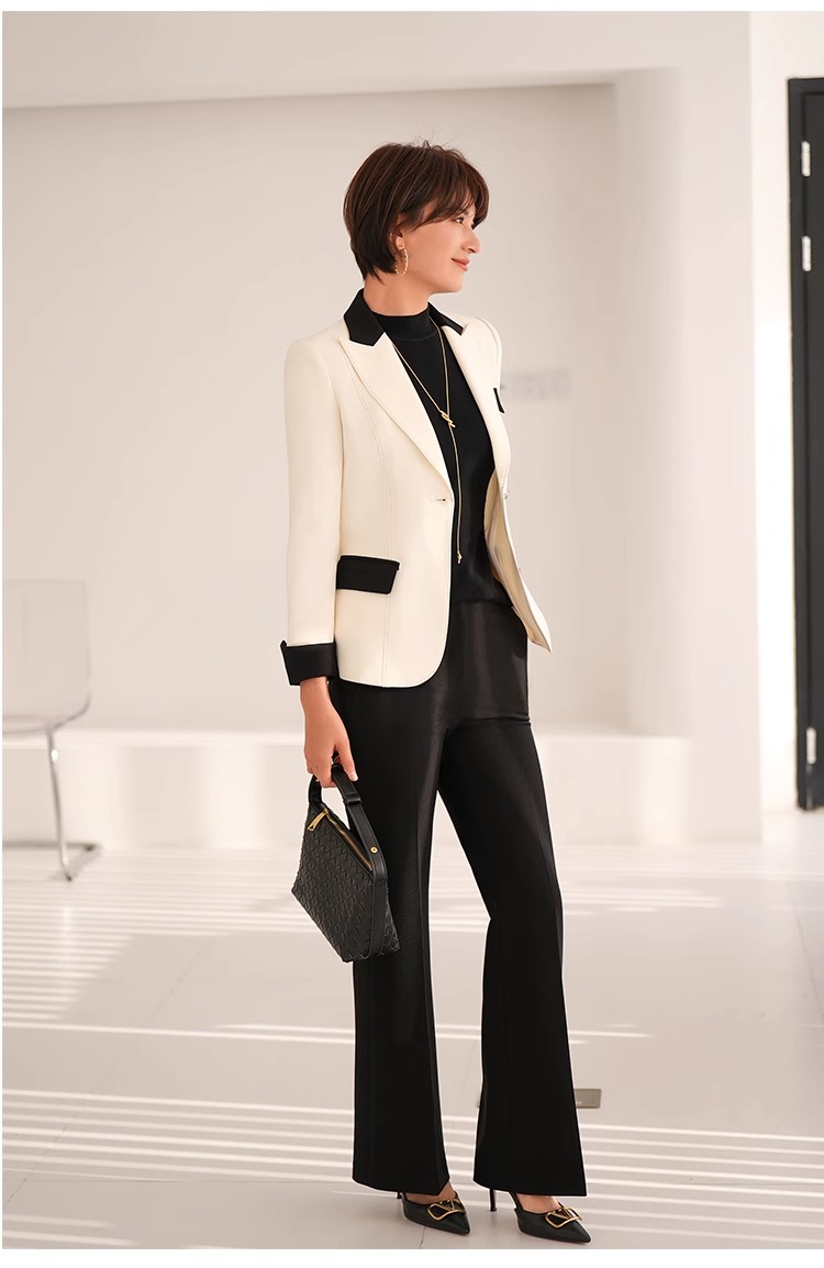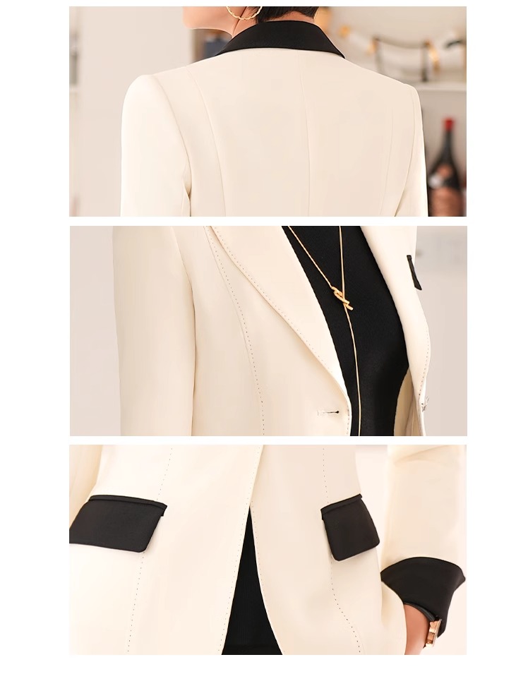 高级感黑白拼接西装套装气质撞色一粒扣西服