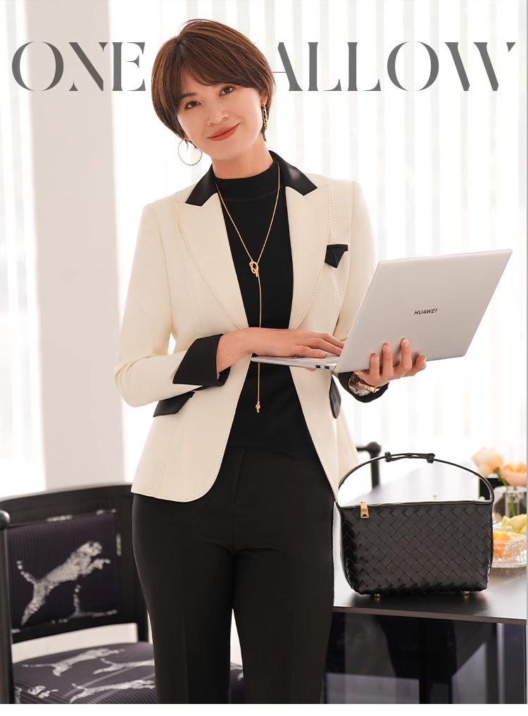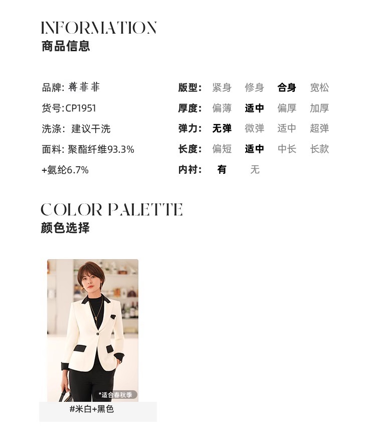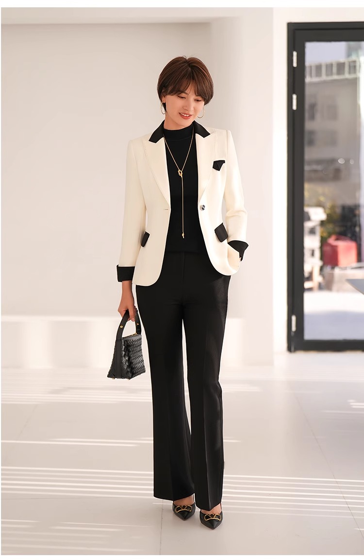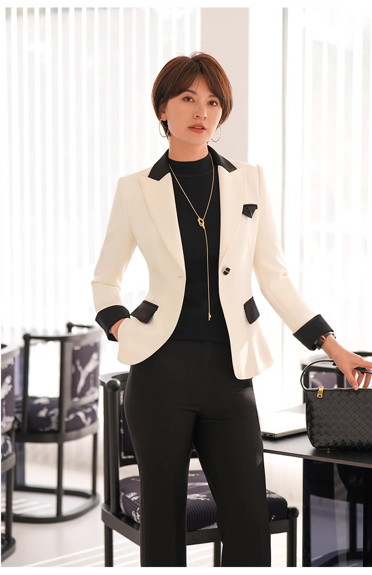 高级感黑白拼接西装套装气质撞色一粒扣西服