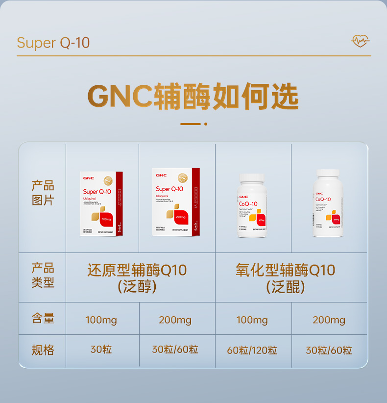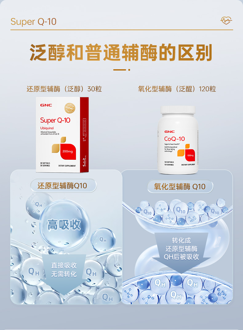 GNC泛醇辅酶Q10还原型高吸收 焕新升级